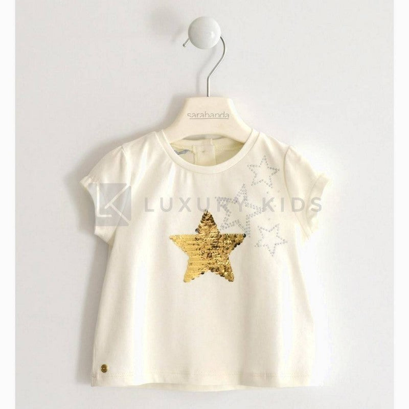 T-Shirt Mezza Manica In Cotone Elasticizzato Panna Neonata SARABANDA J213 - SARABANDA - LuxuryKids