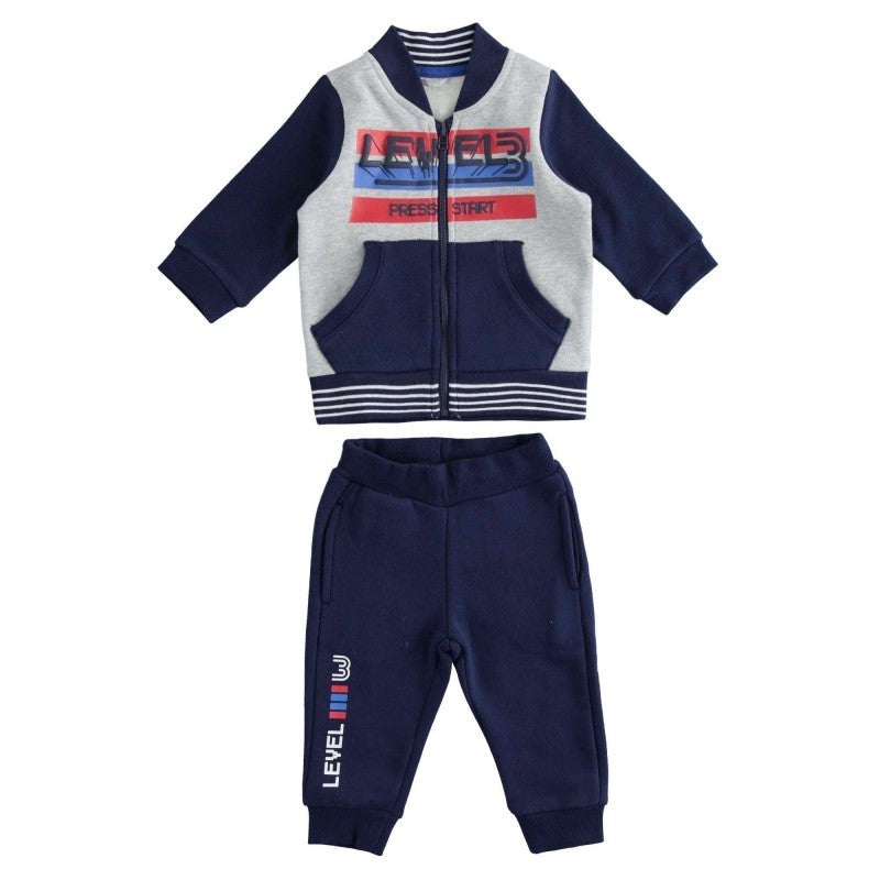 Tuta 2 pezzi in caldo cotone felpato ,blu con contrasti grigi