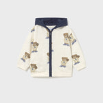 Felpa manica lunga per neonato. Colletto con cappuccio. Chiusura centrale con cerniera. Polsini e orlo elasticizzati per una migliore vestibilità. Stampa camouflage.