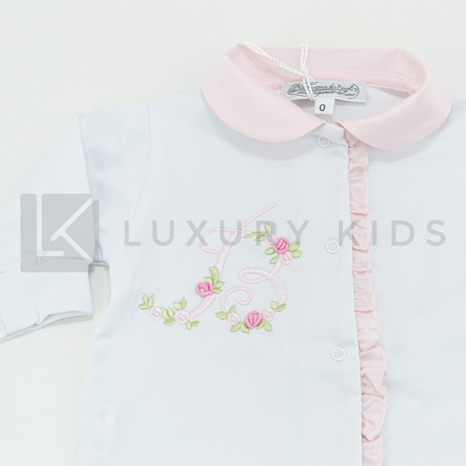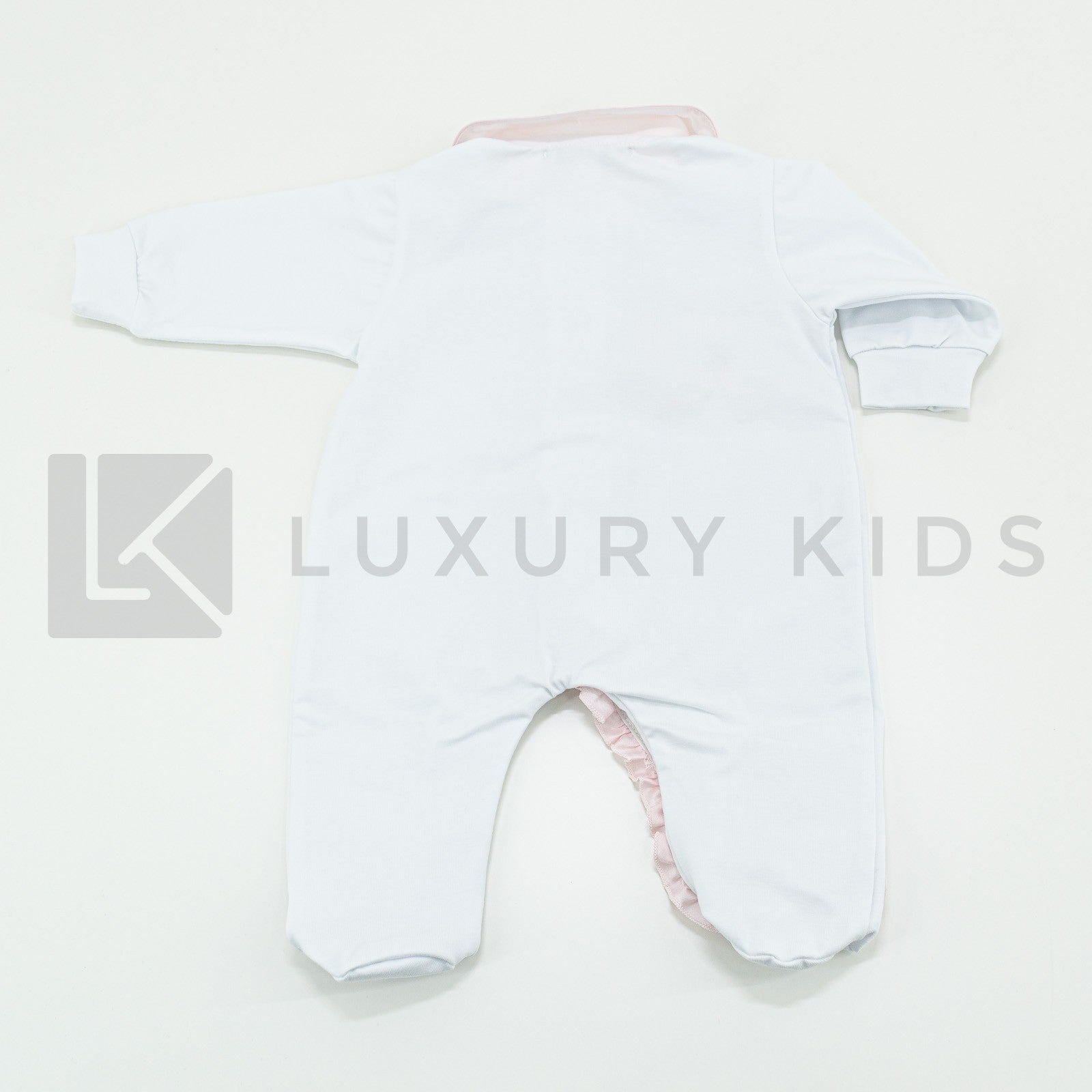 Tutina Intera in cotone con ricamo sul petto e colletto e rouche in raso rosa