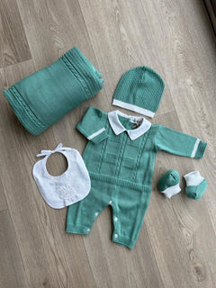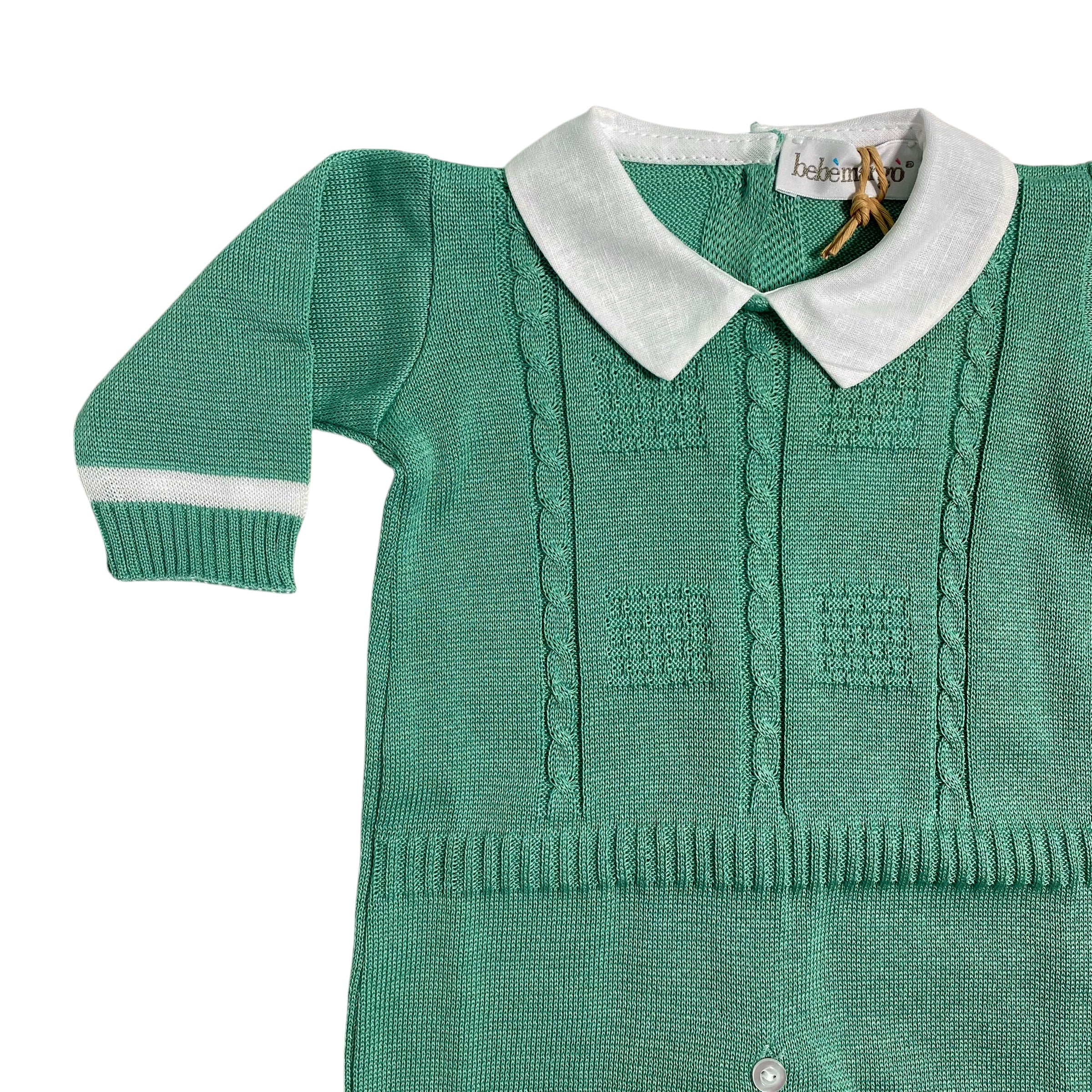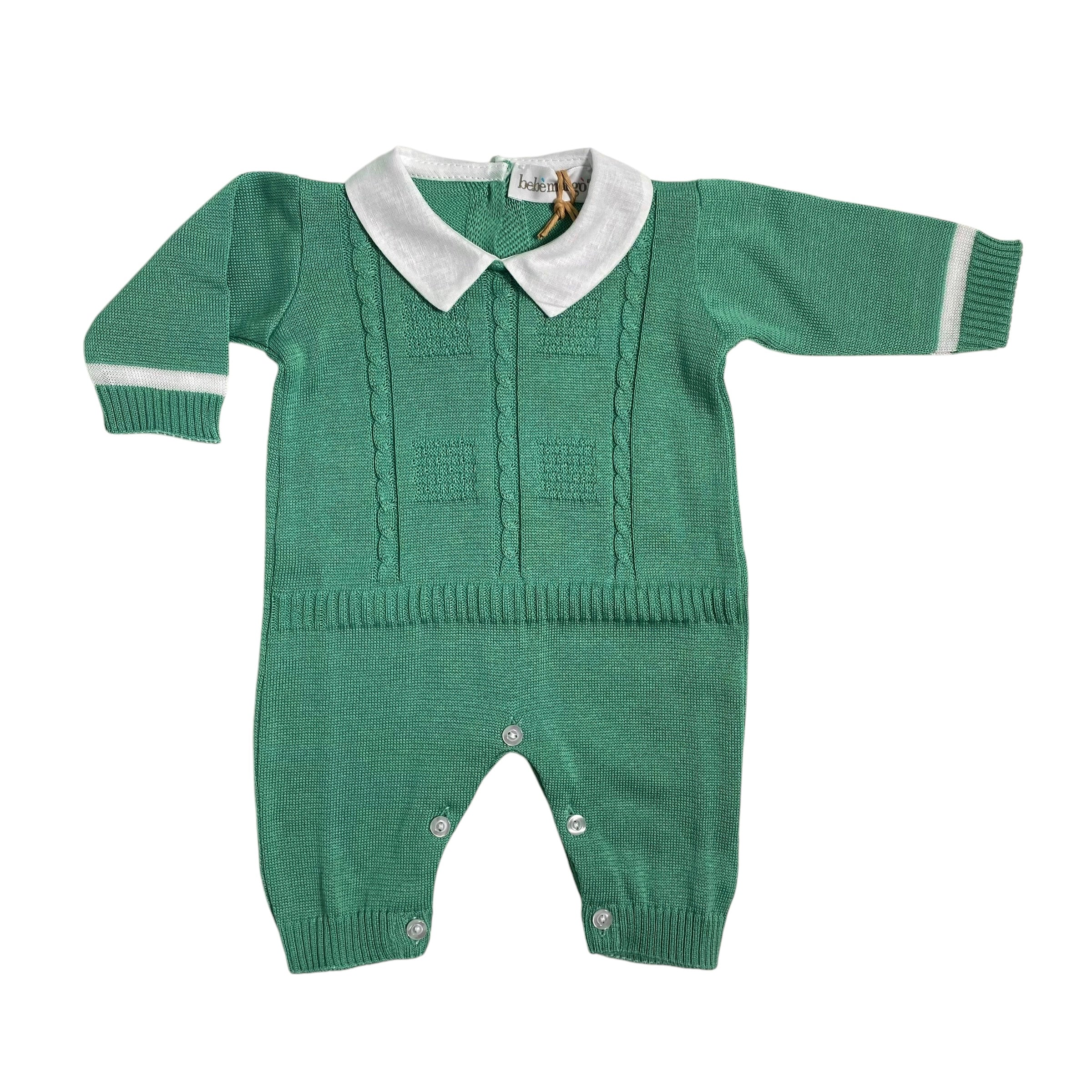 Fresco e comodo per i primi giorni di vita, la tutina intera in filo di cotone BEBE' MARGO' è arricchita da una trama di trecce elegante e un colletto in lino bianco per un look alla moda. Ideale per la prima uscita in clinica.