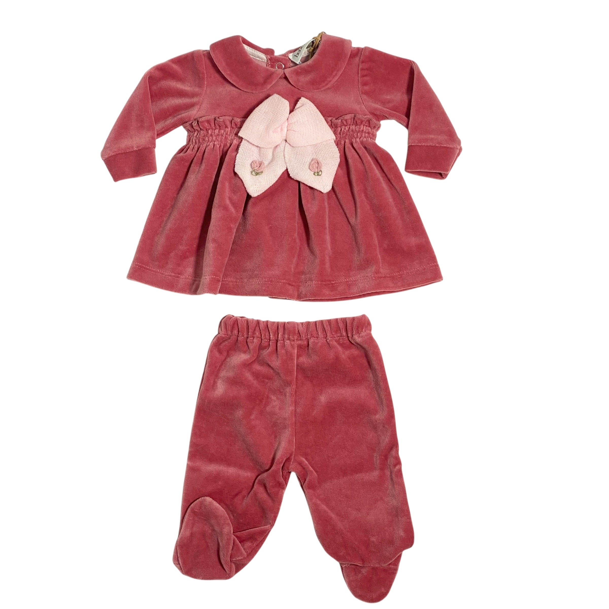 Questa tutina spezzata in morbida ciniglia è pensata per i primi giorni della tua neonata, offrendo una vestibilità comoda e avvolgente. Il tessuto soffice assicura calore e delicata protezione, mentre il fioccone in lana sul davanti aggiunge un tocco di eleganza semplice e raffinata. Un capo essenziale per accompagnare con stile e delicatezza i primissimi momenti di vita.