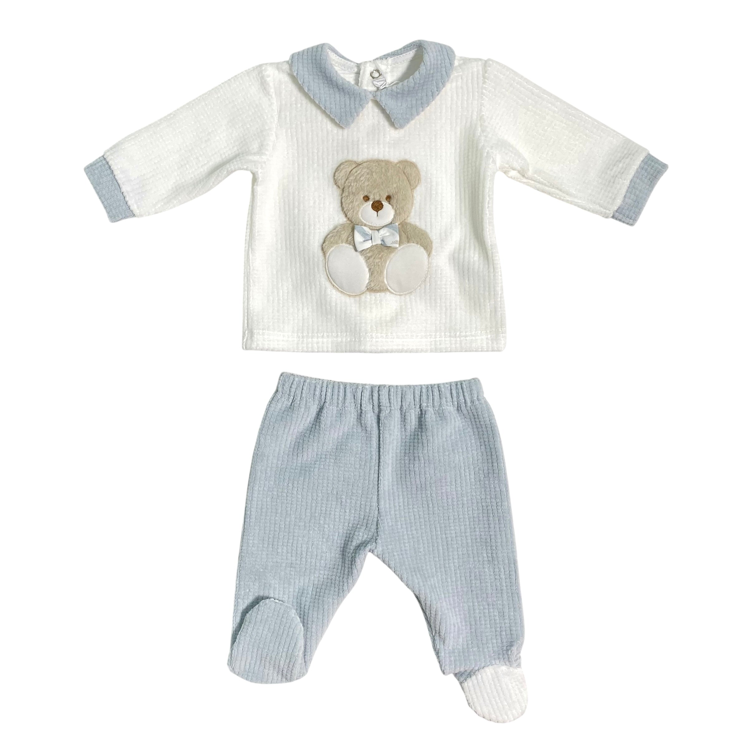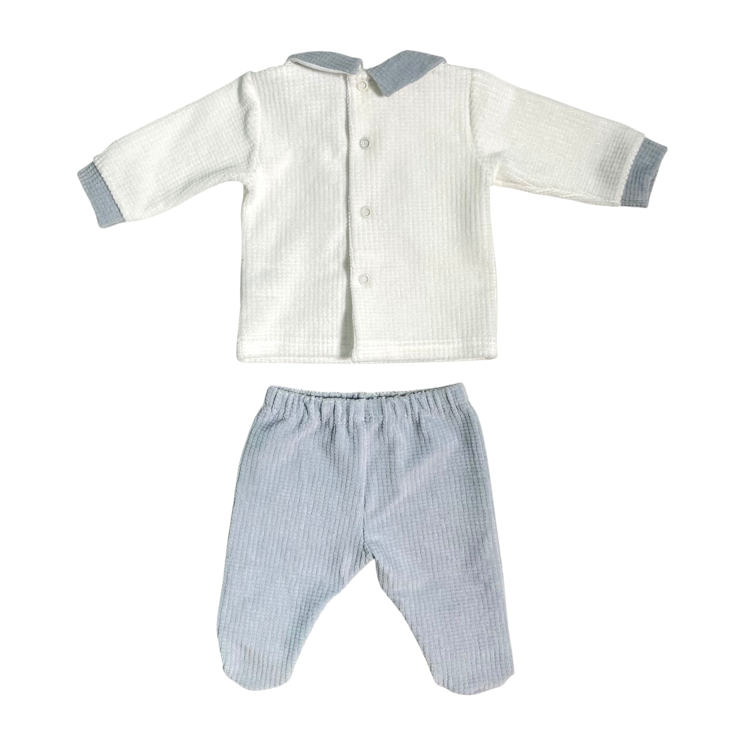 Questa tutina spezzata in ciniglia presenta un morbido orso ricamato e include una maglia in ciniglia abbinata, oltre a una ghettina, ideale per le prime uscite in clinica. Il completo offre comfort e calore, garantendo eleganza e praticità per la neonato fin dai primi giorni. Perfetto come corredino raffinato e funzionale.