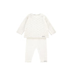 Delicata tutina spezzata realizzata in pregiato filo di cotone, perfetta per il neonato. Il design a due pezzi consente cambi facili e comodi durante la giornata. La stoffa morbida e traspirante garantisce il massimo comfort, mentre la qualità costruttiva assicura durabilità nel tempo. Ideale per le stagioni più calde, questa tutina unisce praticità e eleganza per il vostro piccolo.