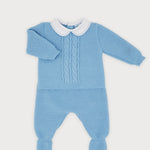 Questa tutina spezzata invernale per neonato è realizzata in tessuto anallergico acrilico, garantendo morbidezza e calore ideali per i primi giorni di vita. Pratica da indossare, assicura comfort e protezione dal freddo senza irritazioni, offrendo un'accoglienza delicata per la pelle sensibile del neonato. Il colletto aggiunge un tocco di eleganza mantenendo la funzionalità.