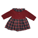 Questo abito combinato e' perfetto per la tua neonata! Il corpetto in maglia offre comfort, mentre il tessuto stampato a quadri aggiunge un tocco di stile. Il collo arricciato e i pom pon sul petto rendono questo capo elegante e sofisticato. Aggiungi un tocco di classe al guardaroba della tua piccola con questo abito.
