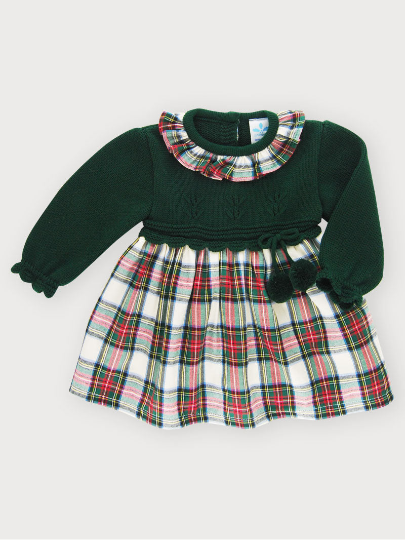Abito Combinato Tricot E Caldo Cotone Scozzese Neonata SARDON VE348