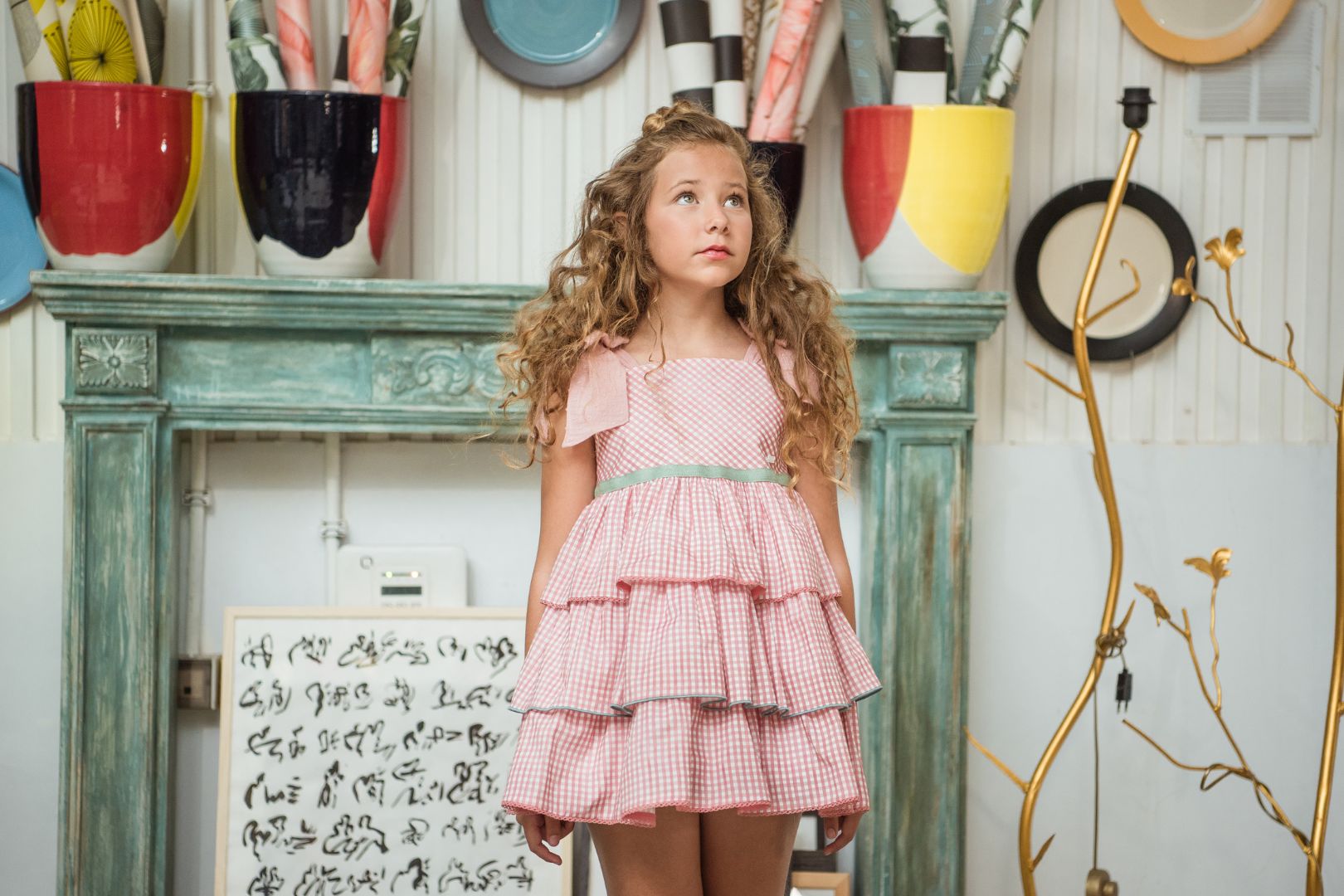 Abito con bretelline in vichy con balze