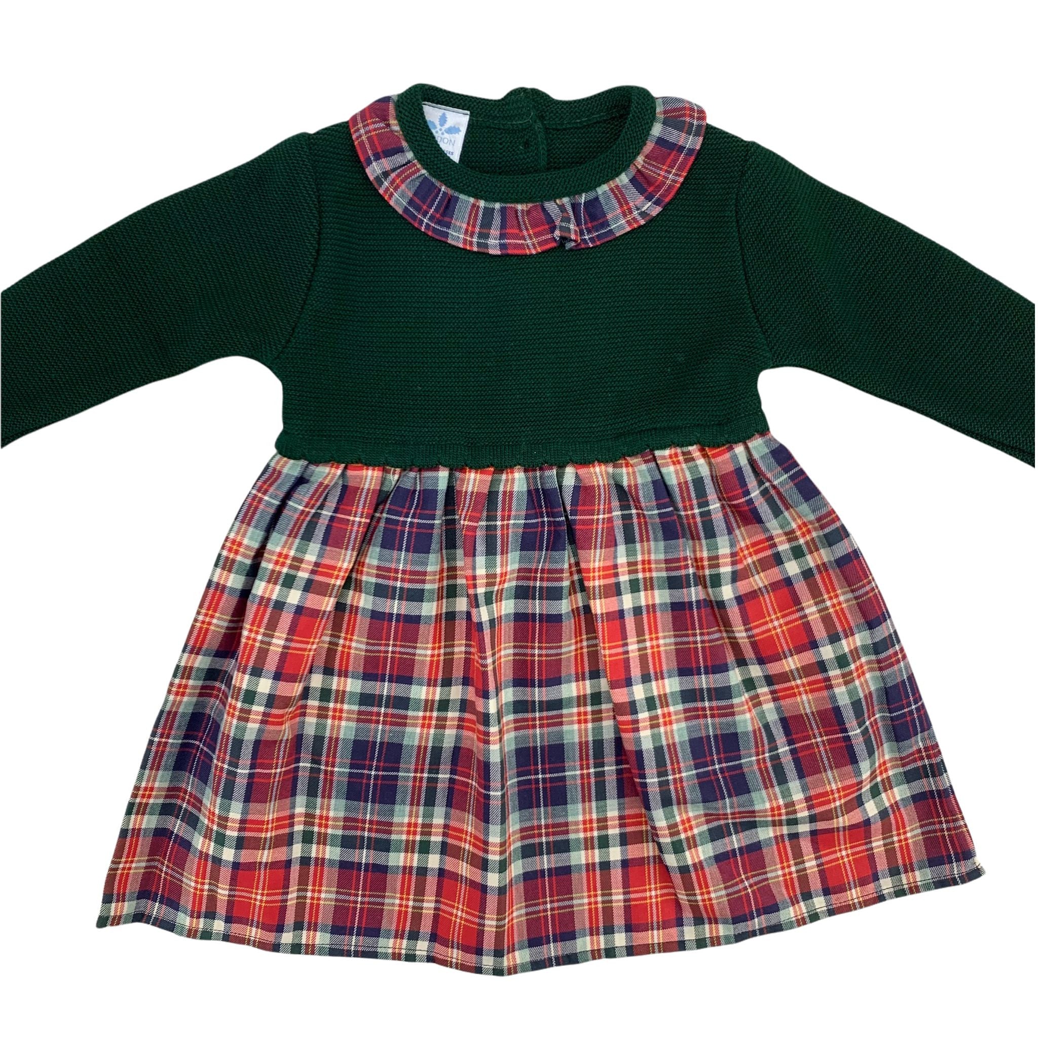 Warm cotton dress with tartan patterned skirt and fly at the neck, back closure with buttons.