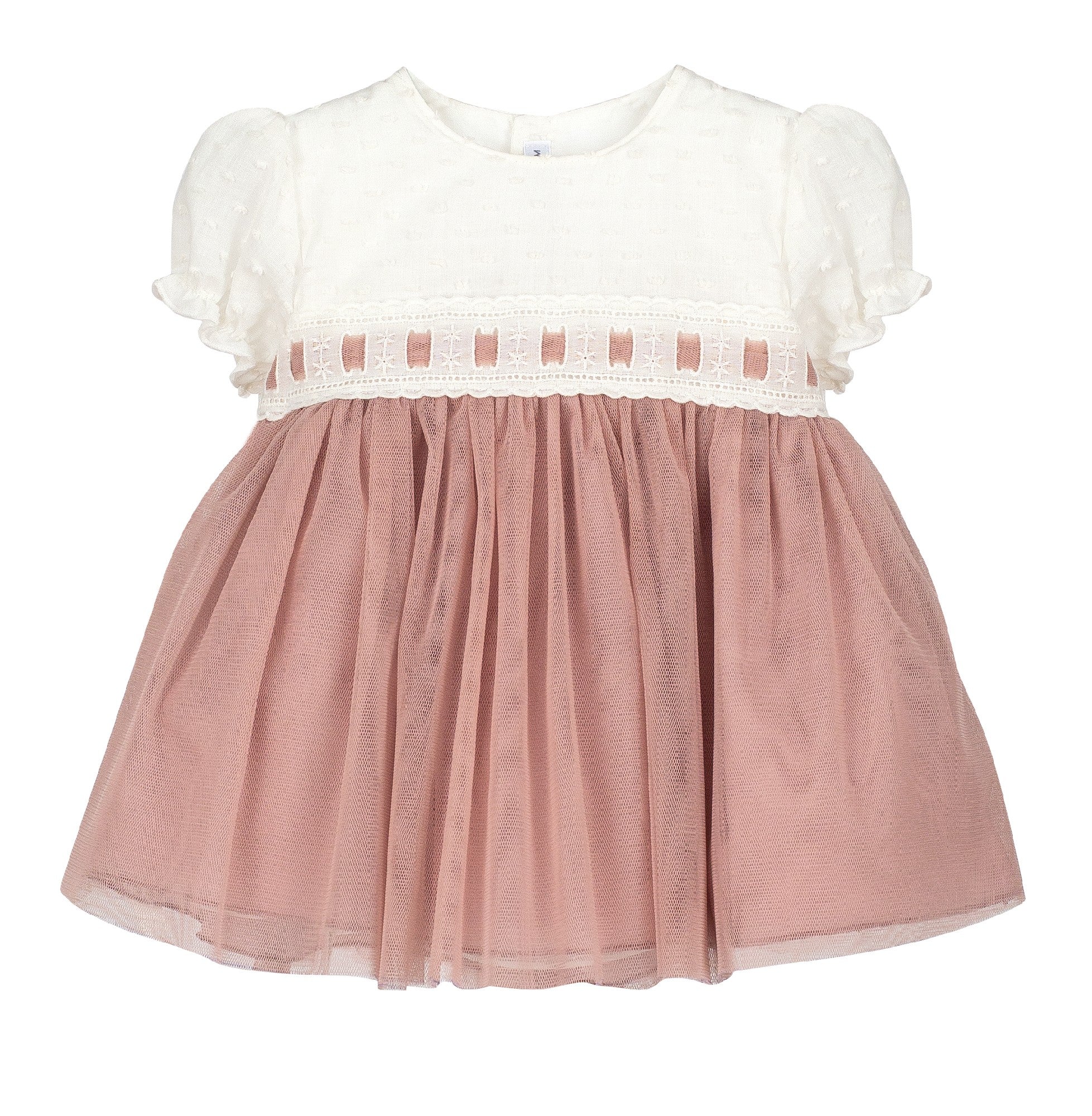 Abito in tulle mezza manica ,foderato internamente in cotone ,chiusura sul retro con bottoni