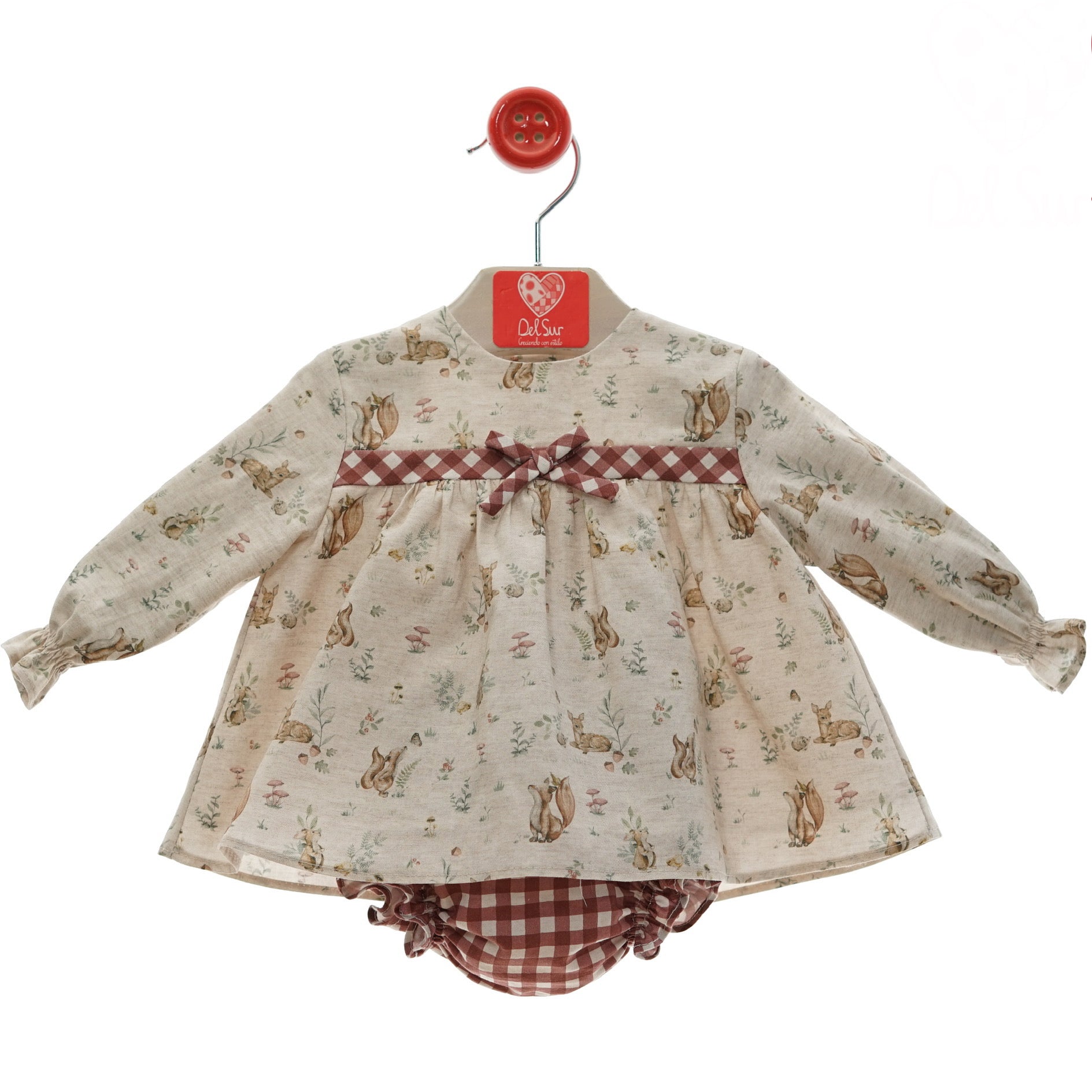 Questo abito stampato per neonate DEL SUR offre non solo uno stile versatile e alla moda grazie alla fantasia stampata, ma anche comfort e calore grazie al morbido cotone e alla manica lunga. Il design svasato aggiunge un tocco di eleganza, mentre la culotte abbinata completa il look perfetto per la tua piccola fashionista.