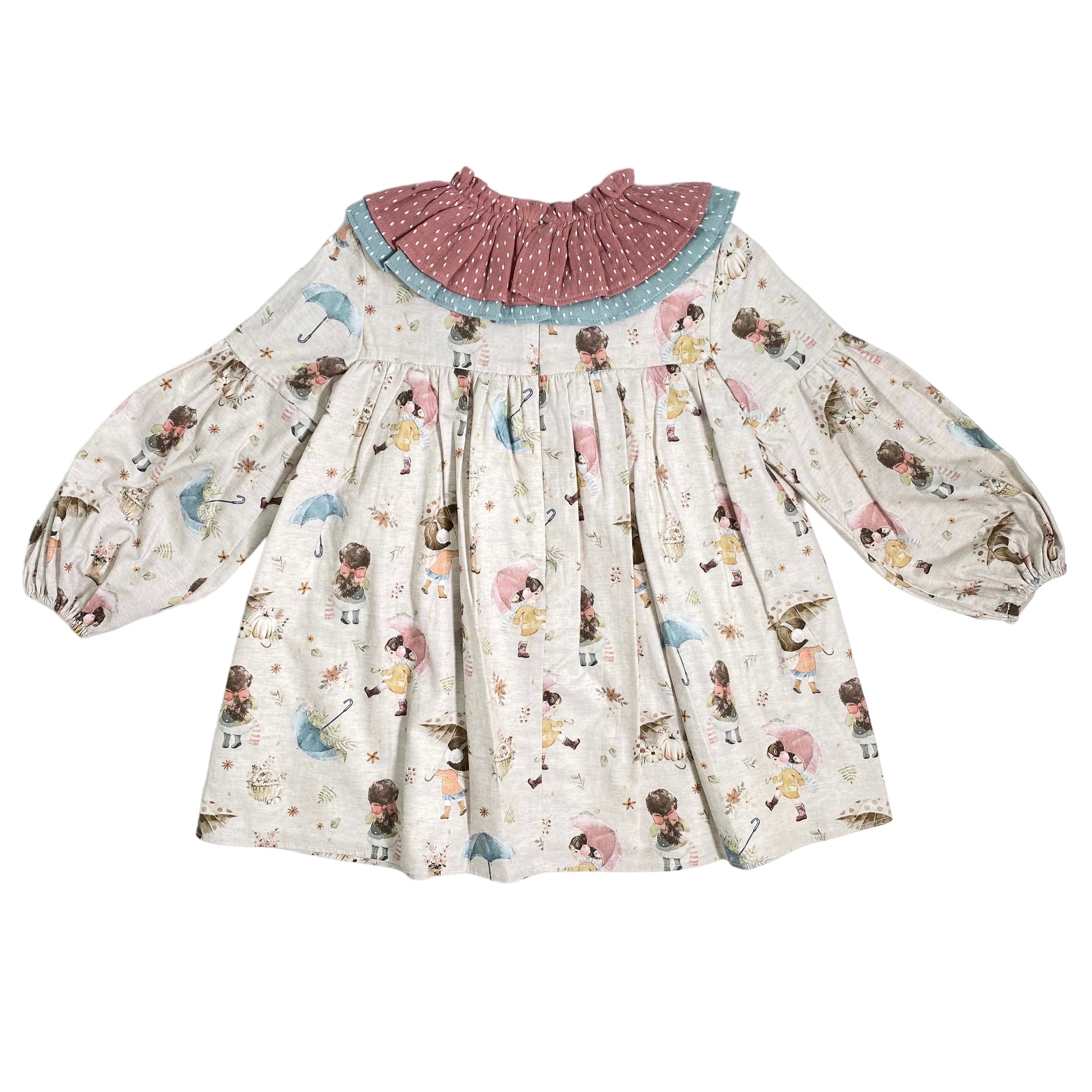 Abito Manica Lunga Svasato In Caldo Cotone Bambina YOEDU 5158