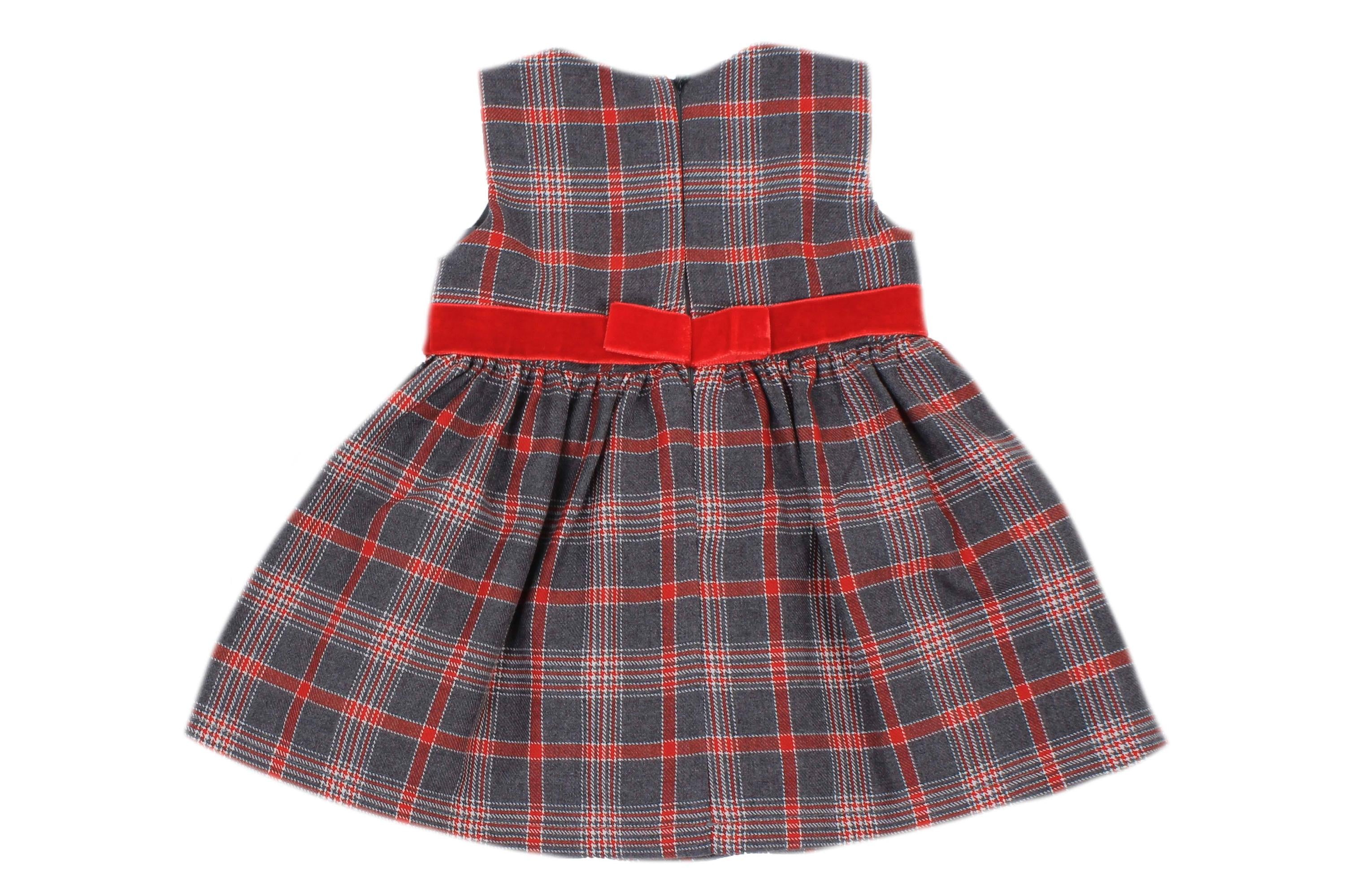 Scottish patterned dress with velvet band, sleeves and back closure with invisible zip.