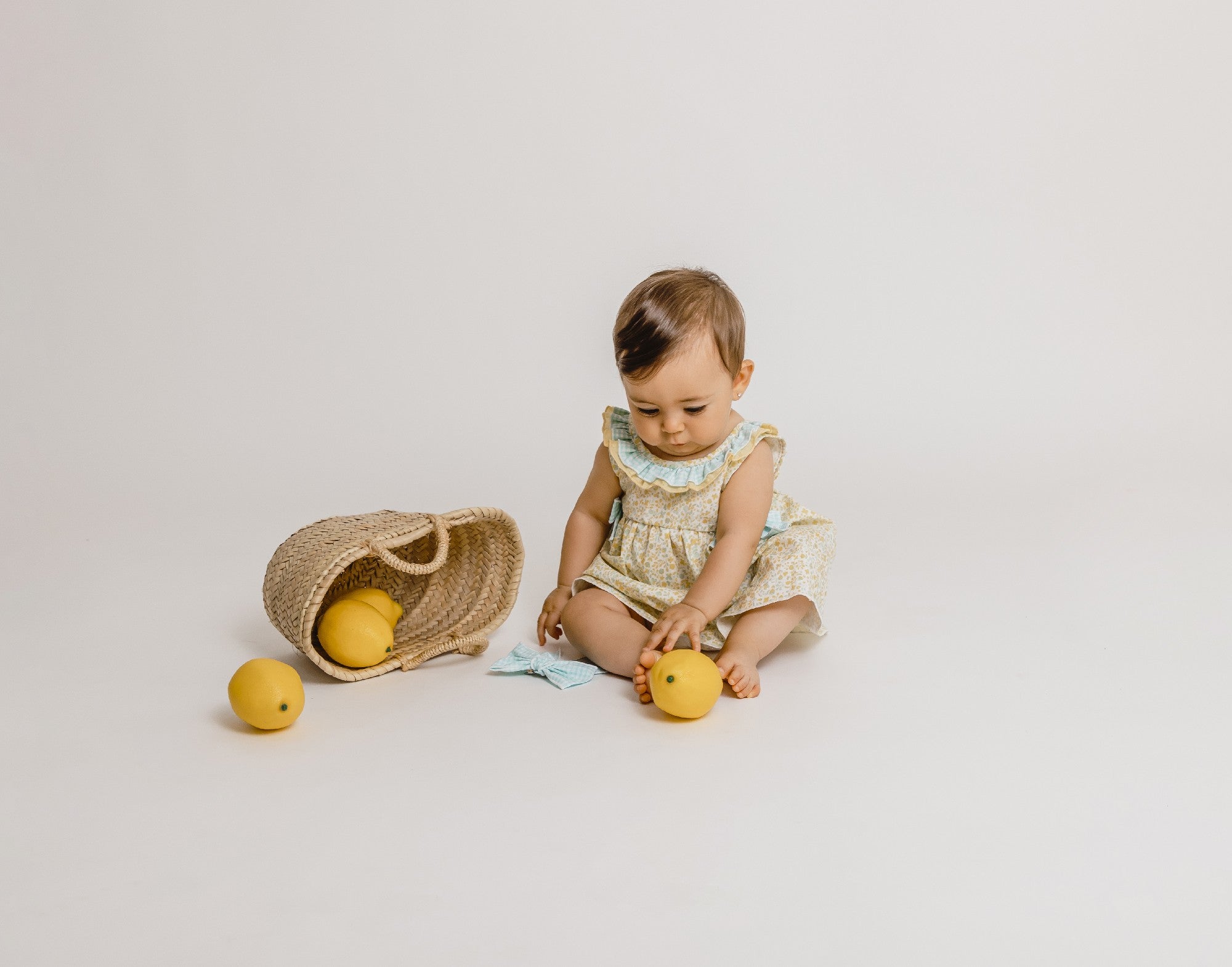 -girocollo rifinito con doppia balza in vichy verde e in plumetis