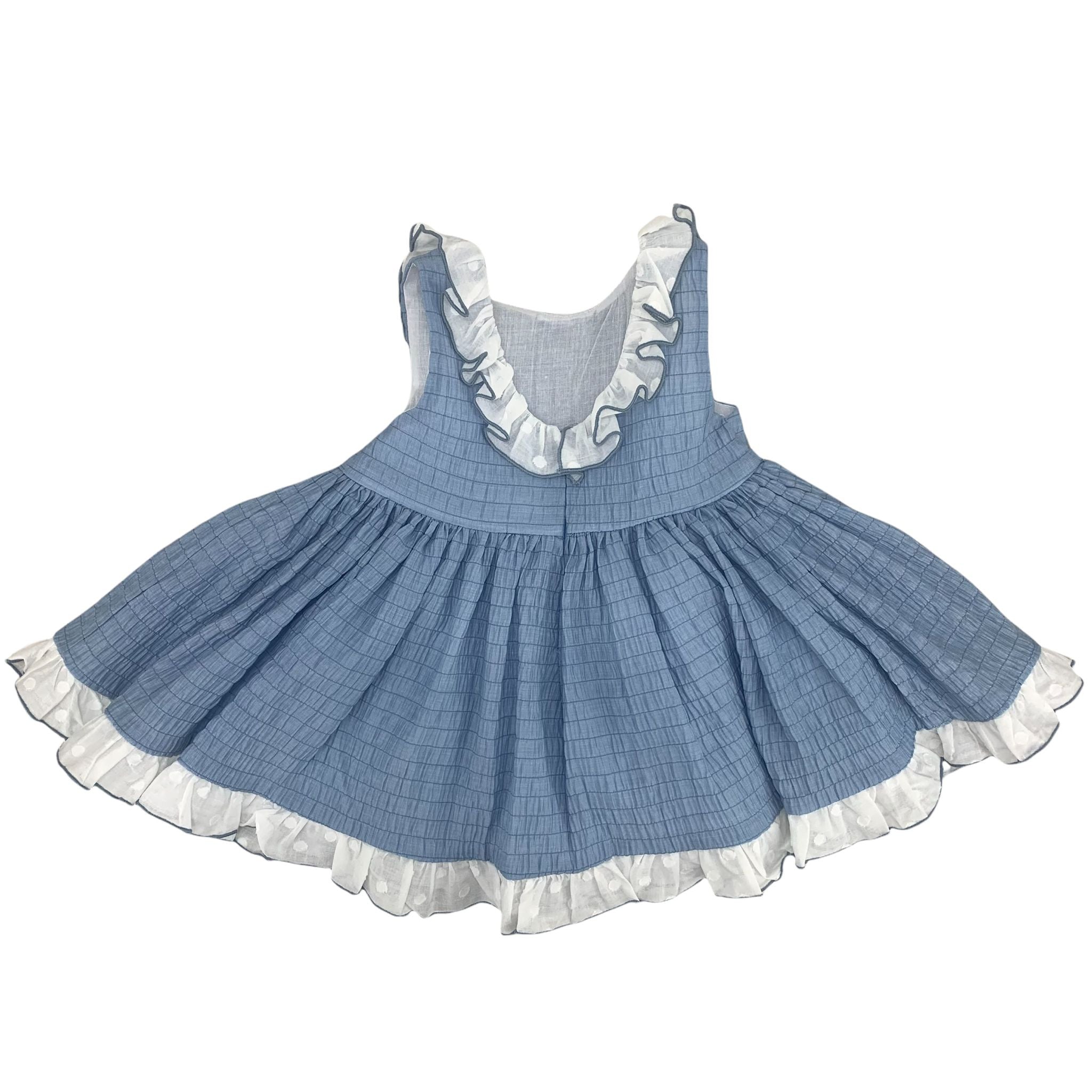 Sleeveless organza dress with ruffled bodice on the sides, cut at the waist and wide skirt.