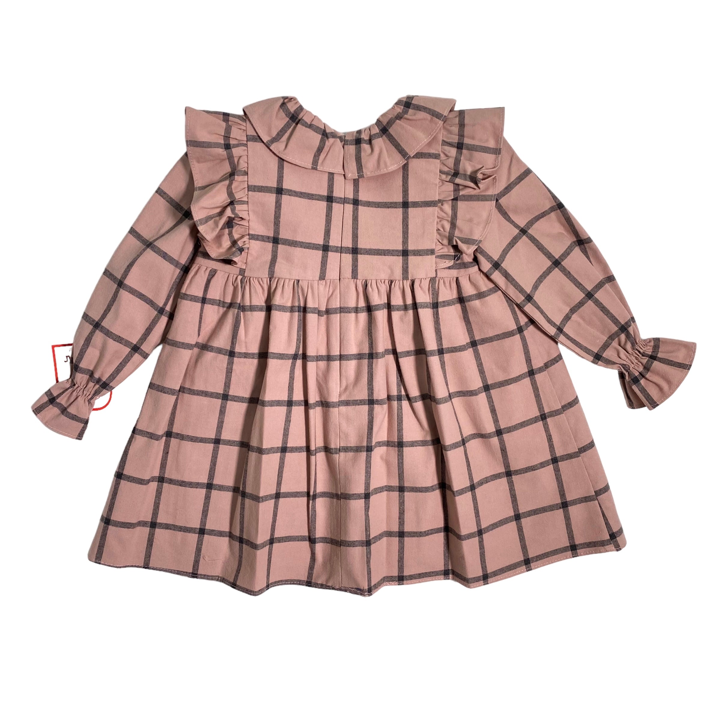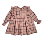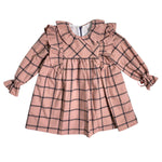 Abito svasato manica lunga, in caldo cotone, con fantasia quadri.