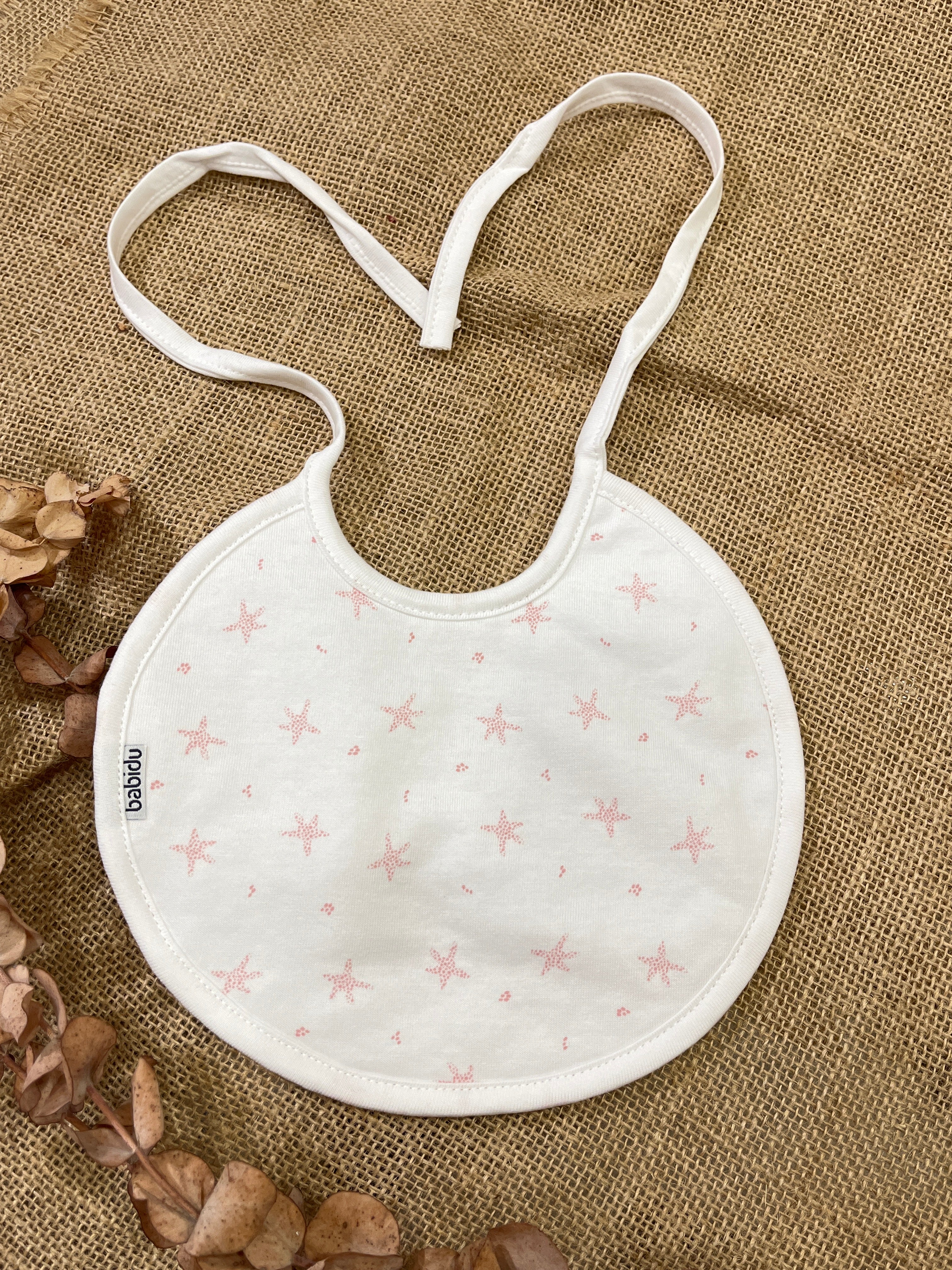 Single bib in sponge with pink or light blue marine pattern on a white base