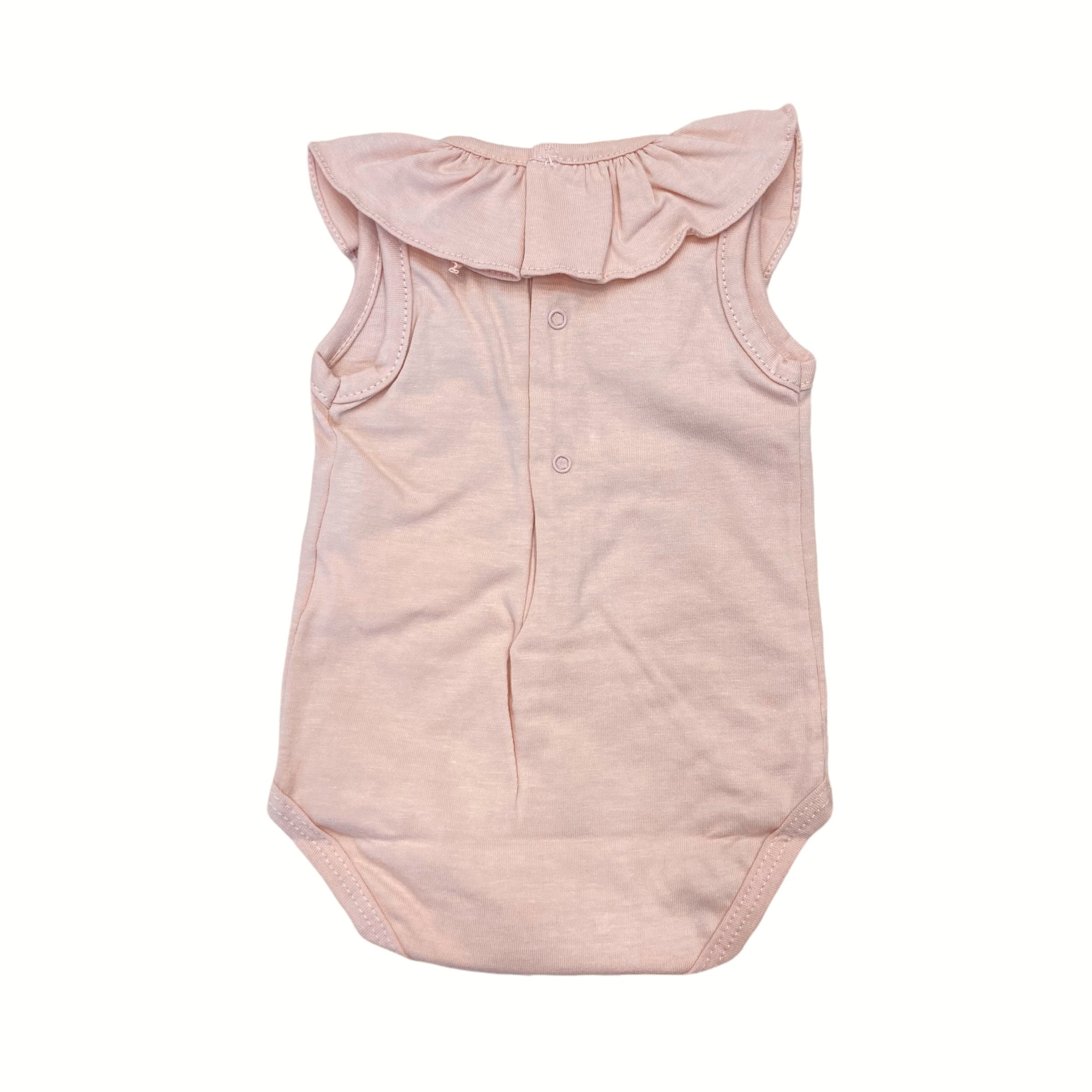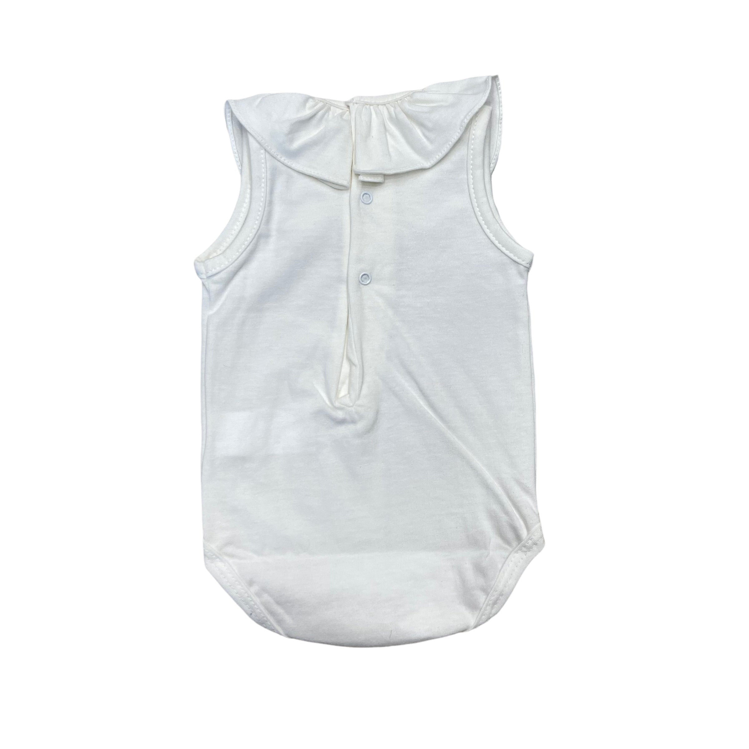 Body in cotton armhole embellished with a ruffle on the simple collar. available in pink, white and cream