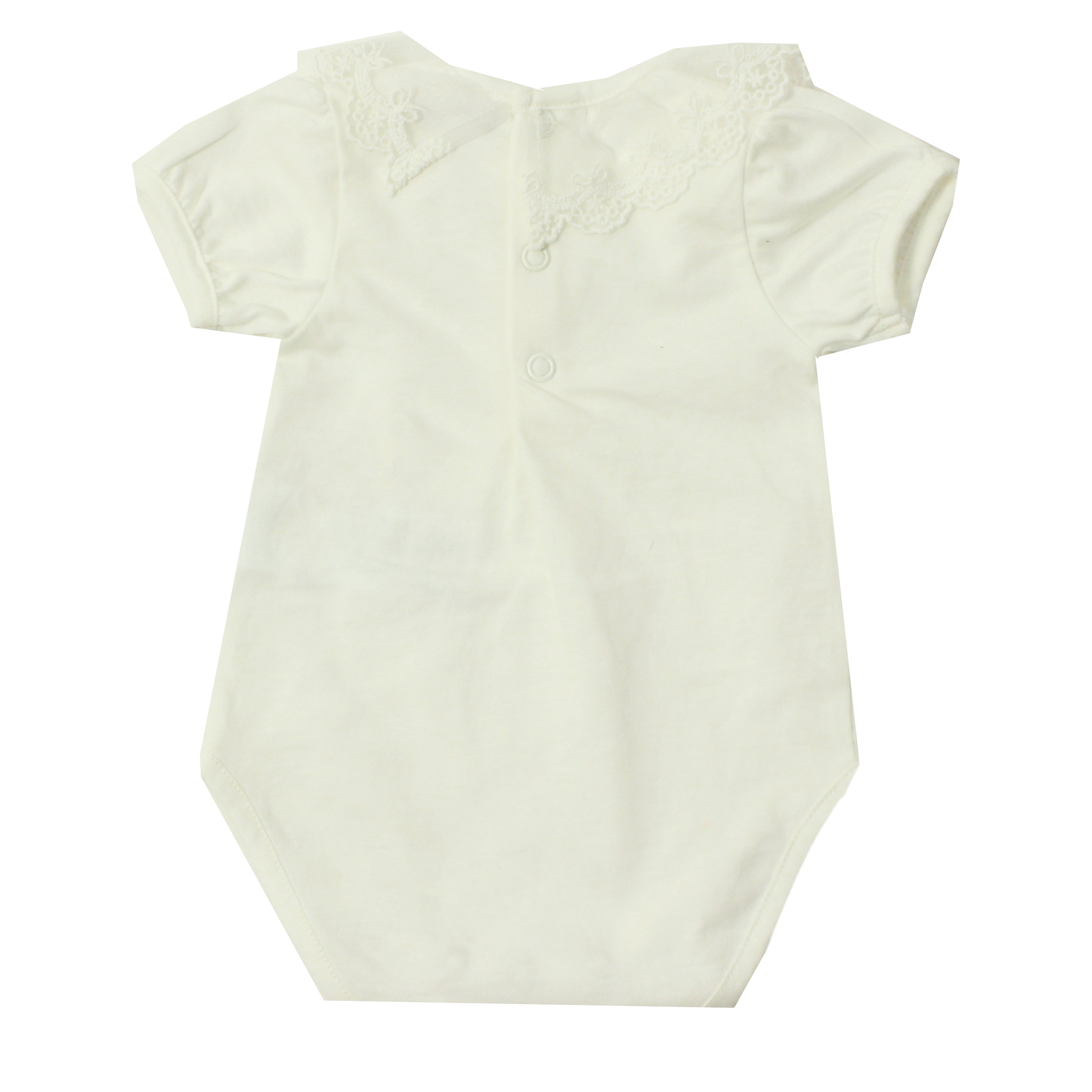 Questo body con mezze maniche è realizzato in morbido cotone e dotato di un elegante collo in pizzo. È perfetto per arricchire gli outfit della tua neonata, donando un tocco di eleganza e raffinatezza. Garantisce comfort e stile in ogni occasione.