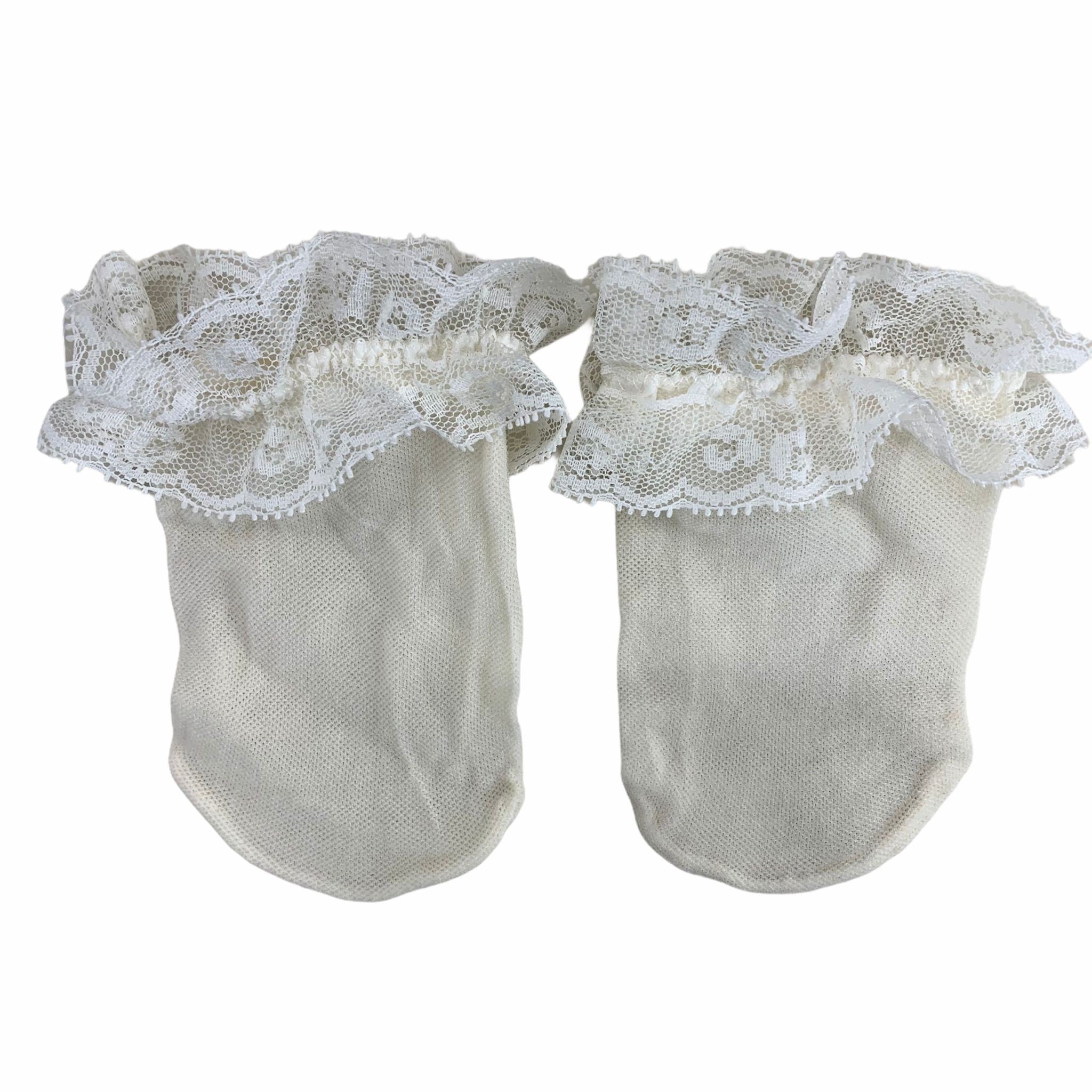 Short socks in micro-mesh with lace trim.