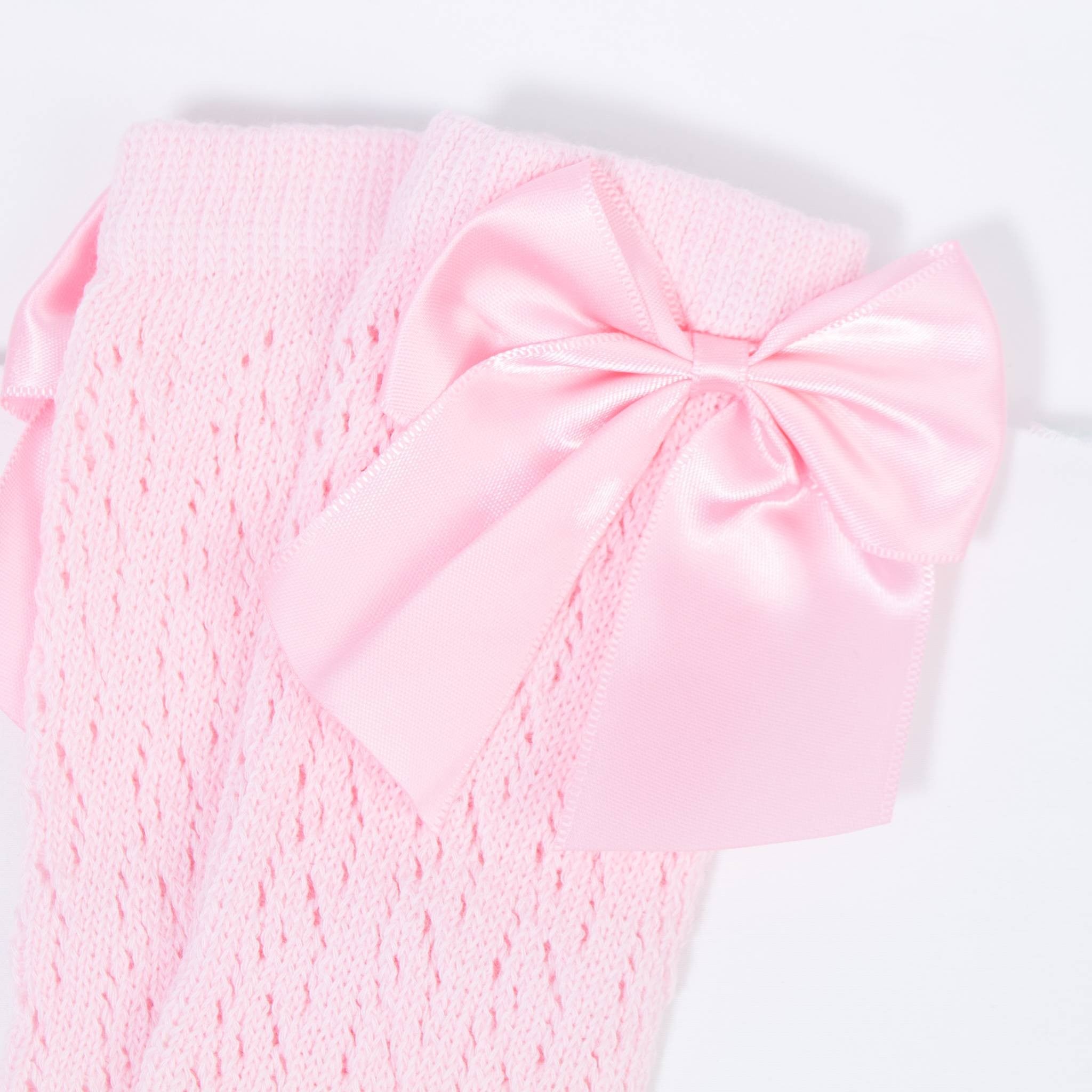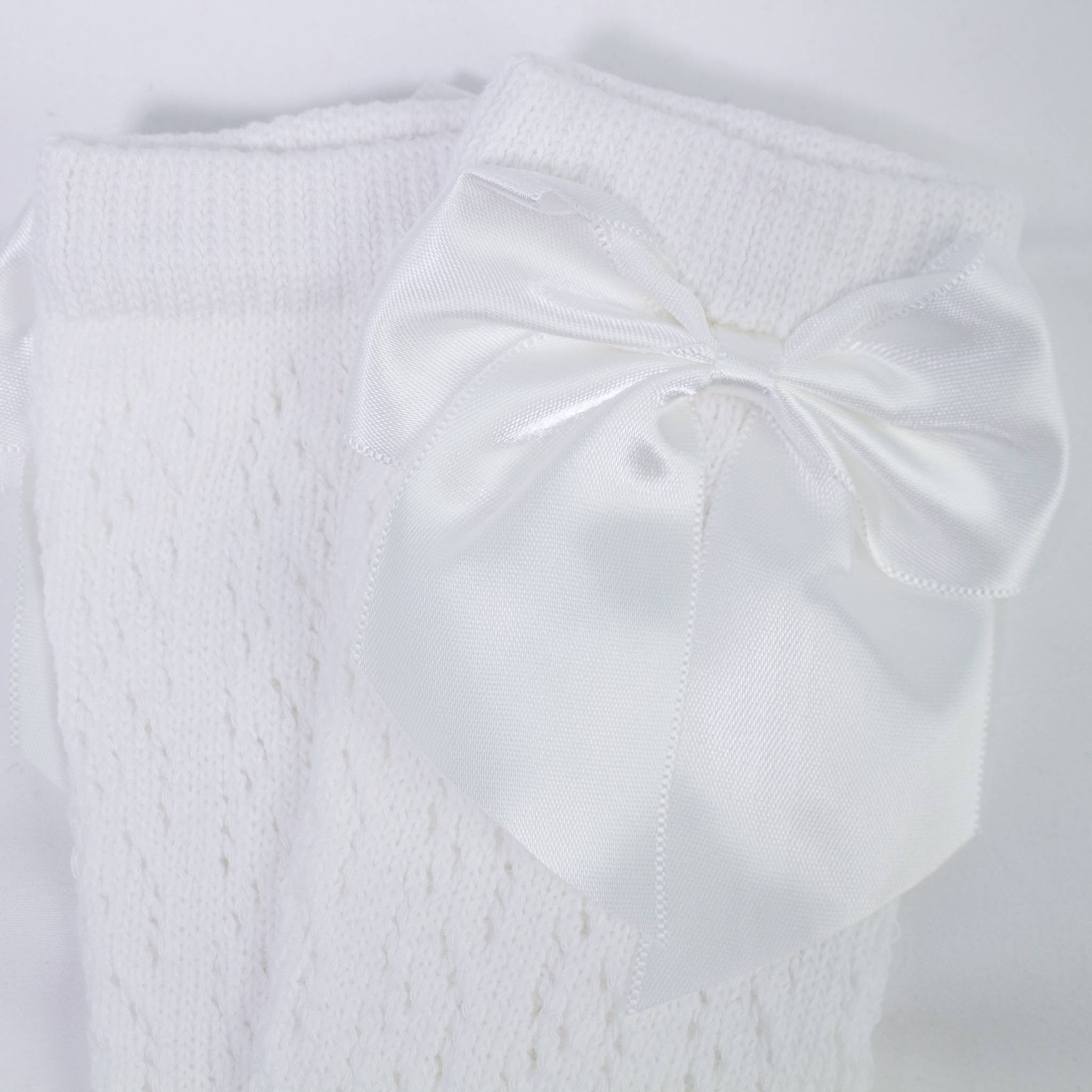Perforated Cotton Socks With Satin Bow For Girls. Chic and Elegant perfect for Any Look.