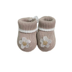 Calzino scarpetta in filo di cotone, in tinta unita beige, con fiore sul davanti.