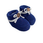 Calzino scarpetta in filo di cotone, blu con base e fiocchetto bianco.