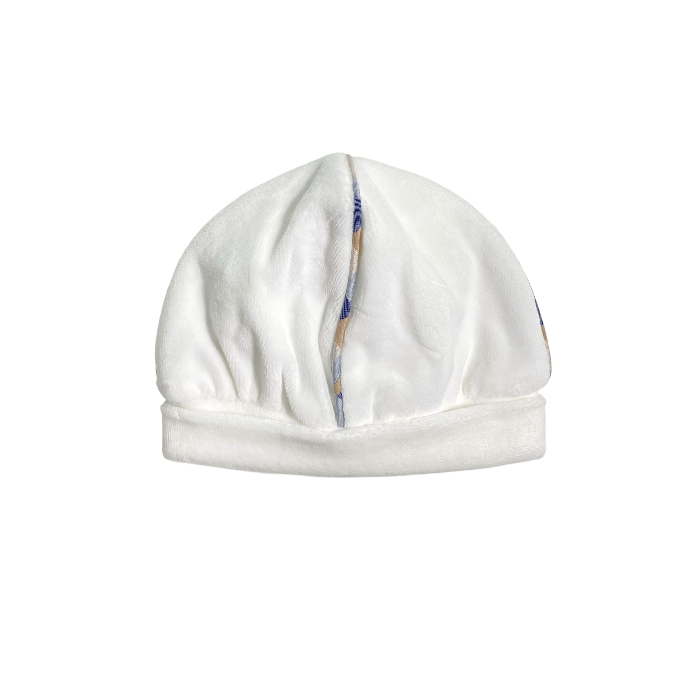 Cappello in ciniglia, in tinta unita panna, con risvolto.