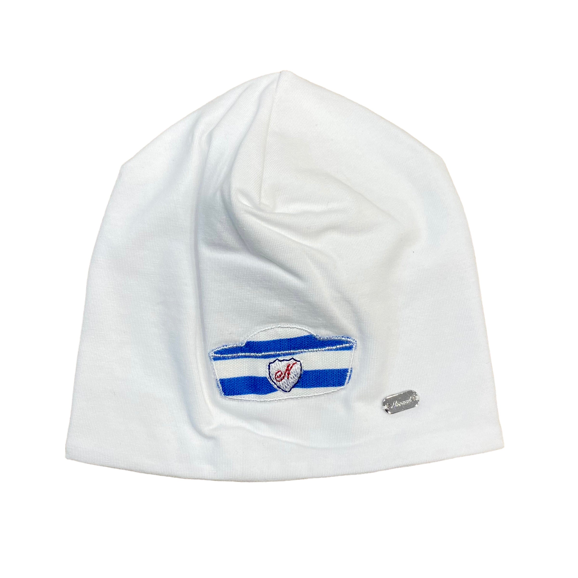 Cappello in cotone bianco, con ricamo barchetta.