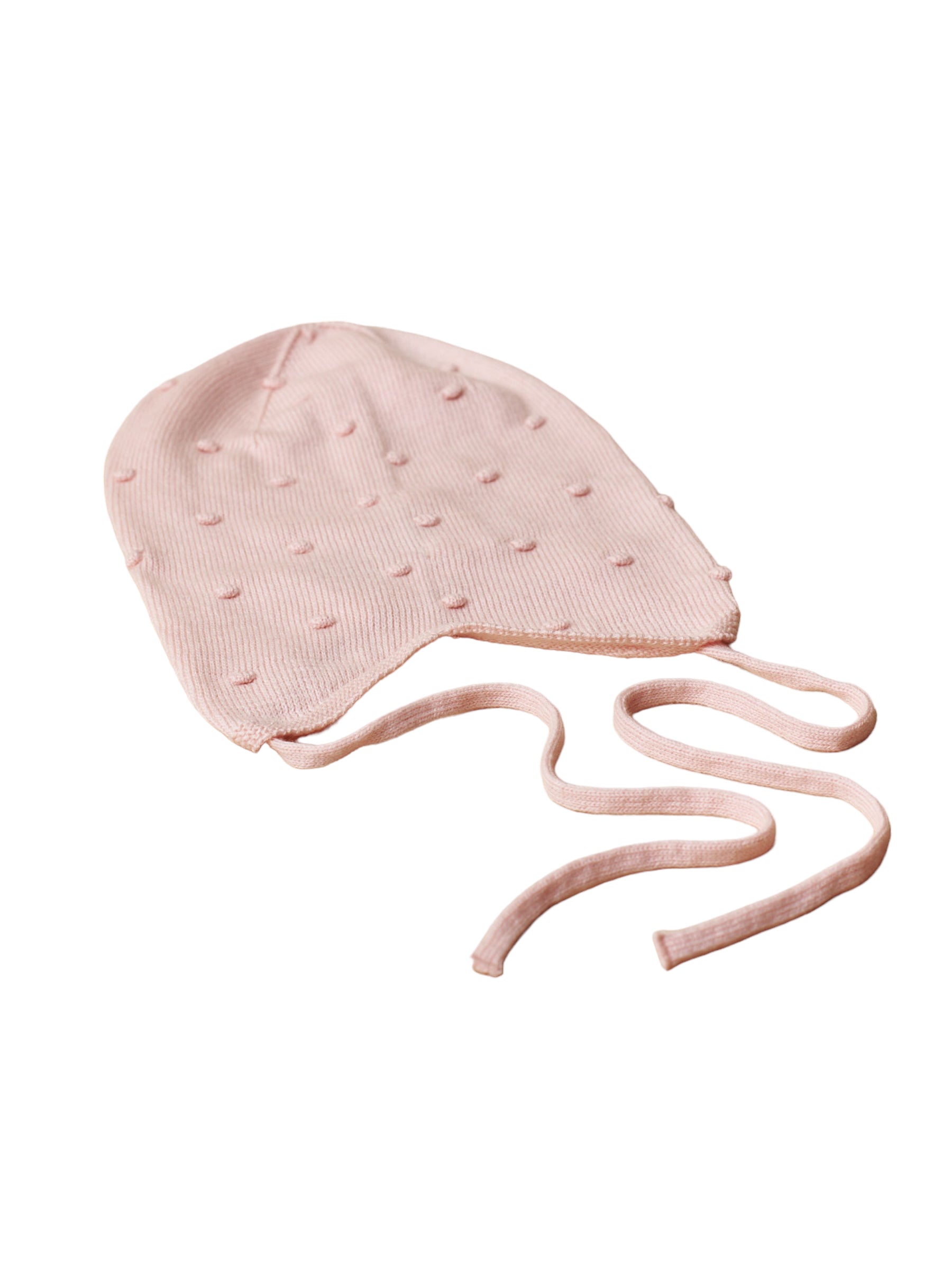 Cappello in filo di cotone, in tinta unita rosa, con poise a rilievo.