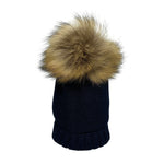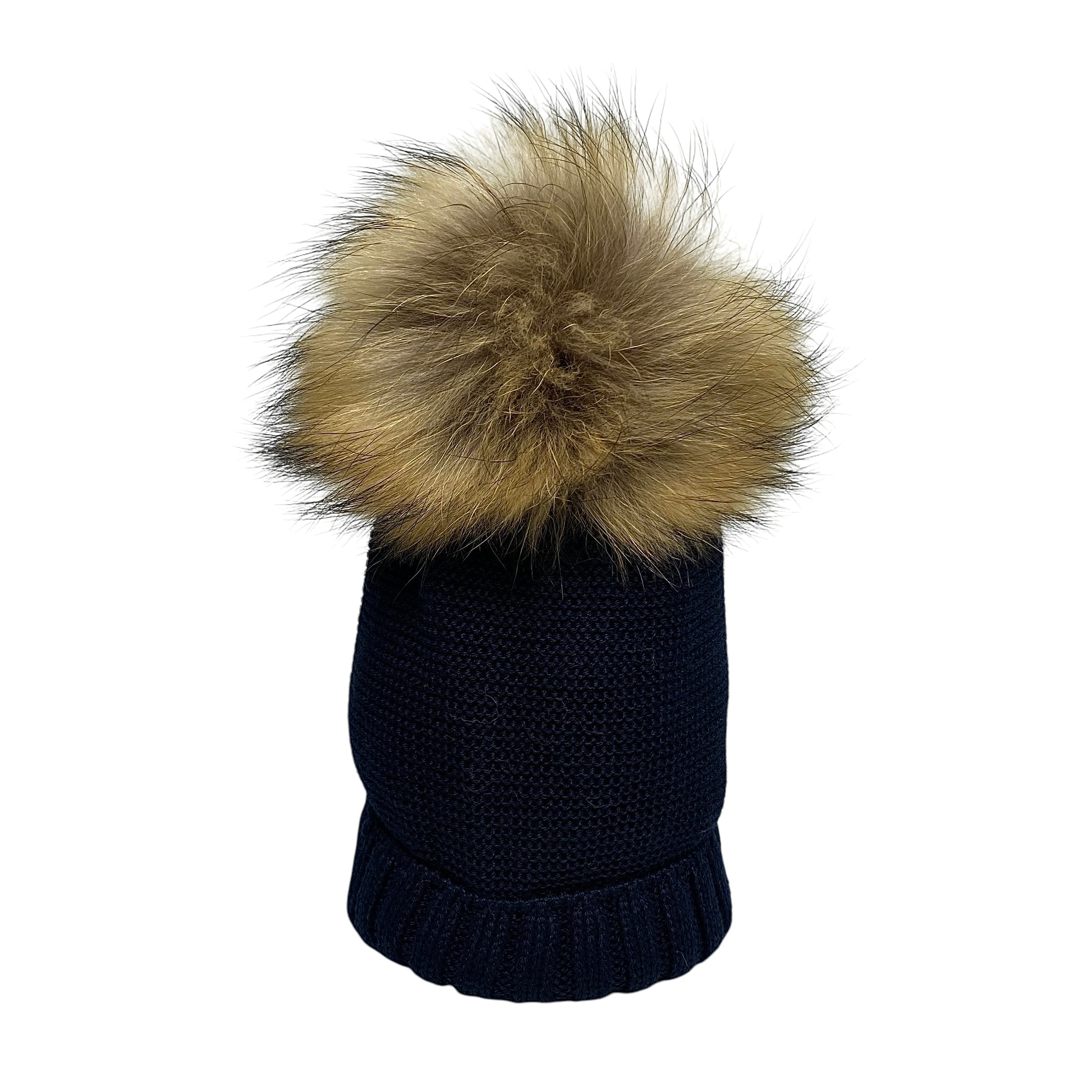 Smooth wool blend hat, with original fur cuff and pom pom.