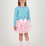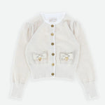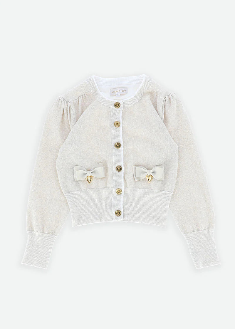 Per sua figlia, questo cardigan in caldo cotone lavorato a maglia fine con un tocco di brillantezza è un capo perfetto da indossare sopra qualsiasi abito.