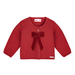 Questo cardigan in caldo cotone per neonata unisce comfort e stile grazie alla maglia a coste, che assicura morbidezza e resistenza. Il delicato fiocco in velluto Coquette sul petto aggiunge un tocco elegante e raffinato, ideale per le occasioni speciali o per completare un outfit quotidiano con classe. Progettato per offrire calore senza rinunciare alla leggerezza, è una scelta esperta per il guardaroba dei più piccoli.