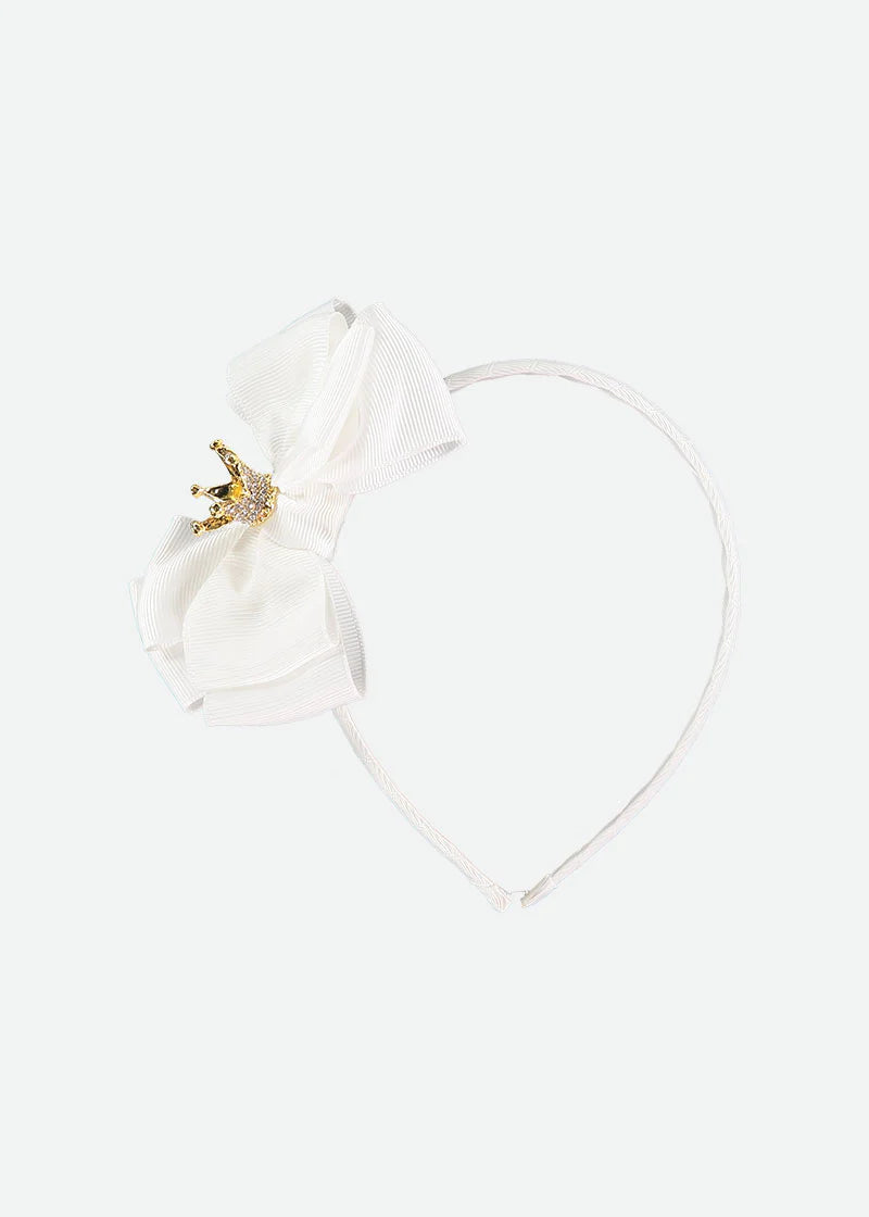 Our sparkly crown headband comes in a range of colors to complement any outfit. The decorative headband features our signature Angels Face bow complete with a sparkling gold crystal crown, suitable for any princess.