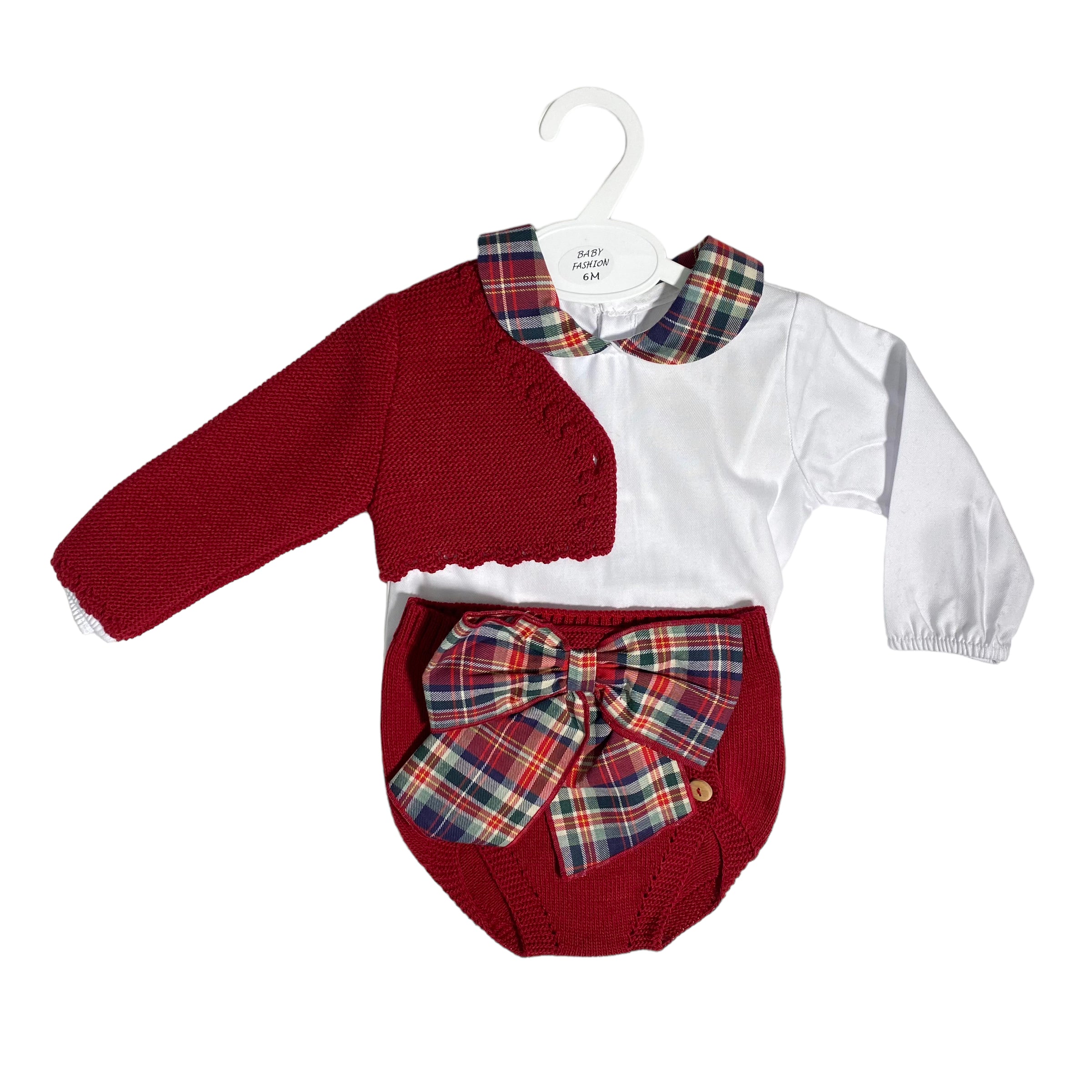 Il colore bordeaux presenta un fioccone scozzese sul davanti della culotte.