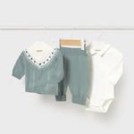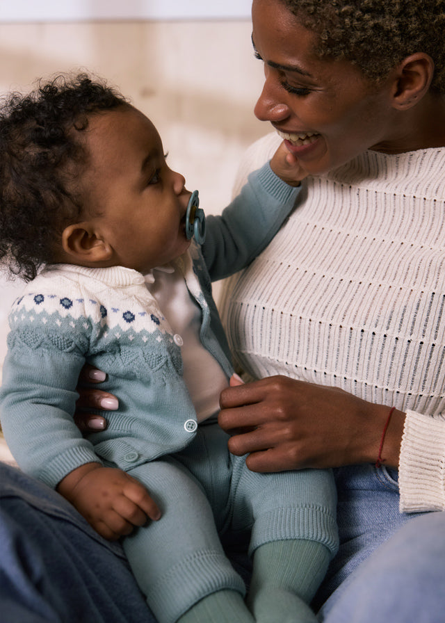 Giacca modello cardigan manica lunga per neonato. Girocollo. Chiusura con bottoni nella parte anteriore. Tessuto in tricot morbido al tatto. Elementi decorativi: tasca decorativa.