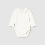 Body manica lunga per neonato. Colletto modello camicia. Chiusura con bottoni a pressione nella parte posteriore. Chiusura con bottoni a pressione nell'interno cosce per agevolare la vestibilità.
