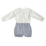 -la camicia e il bermuda si legano all'interno con dei bottoncini in modo da ricreare un pagliaccetto super chic