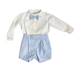 -la camicia e il bermuda si legano all'interno con dei bottoncini in modo da ricreare un pagliaccetto super chic adatto a qualsiasi occasione