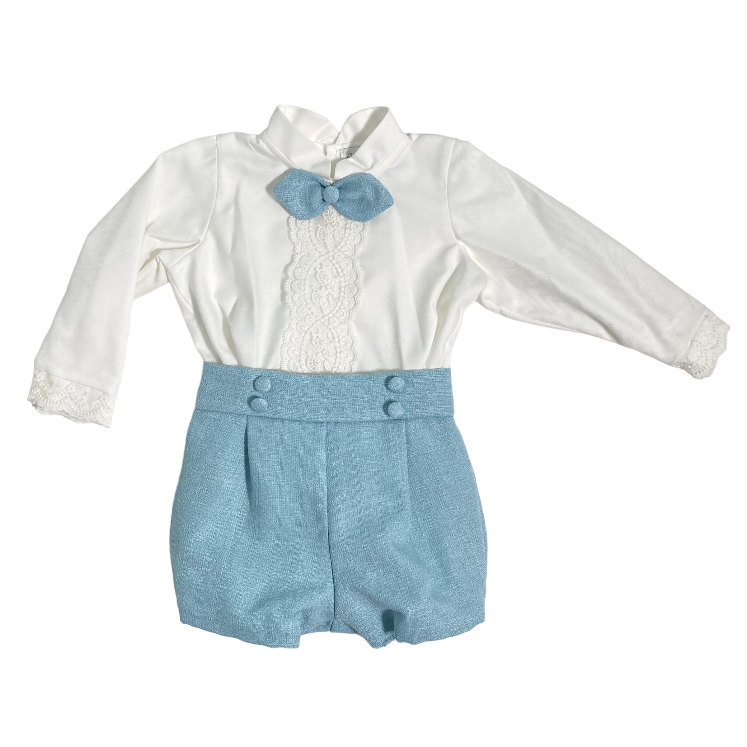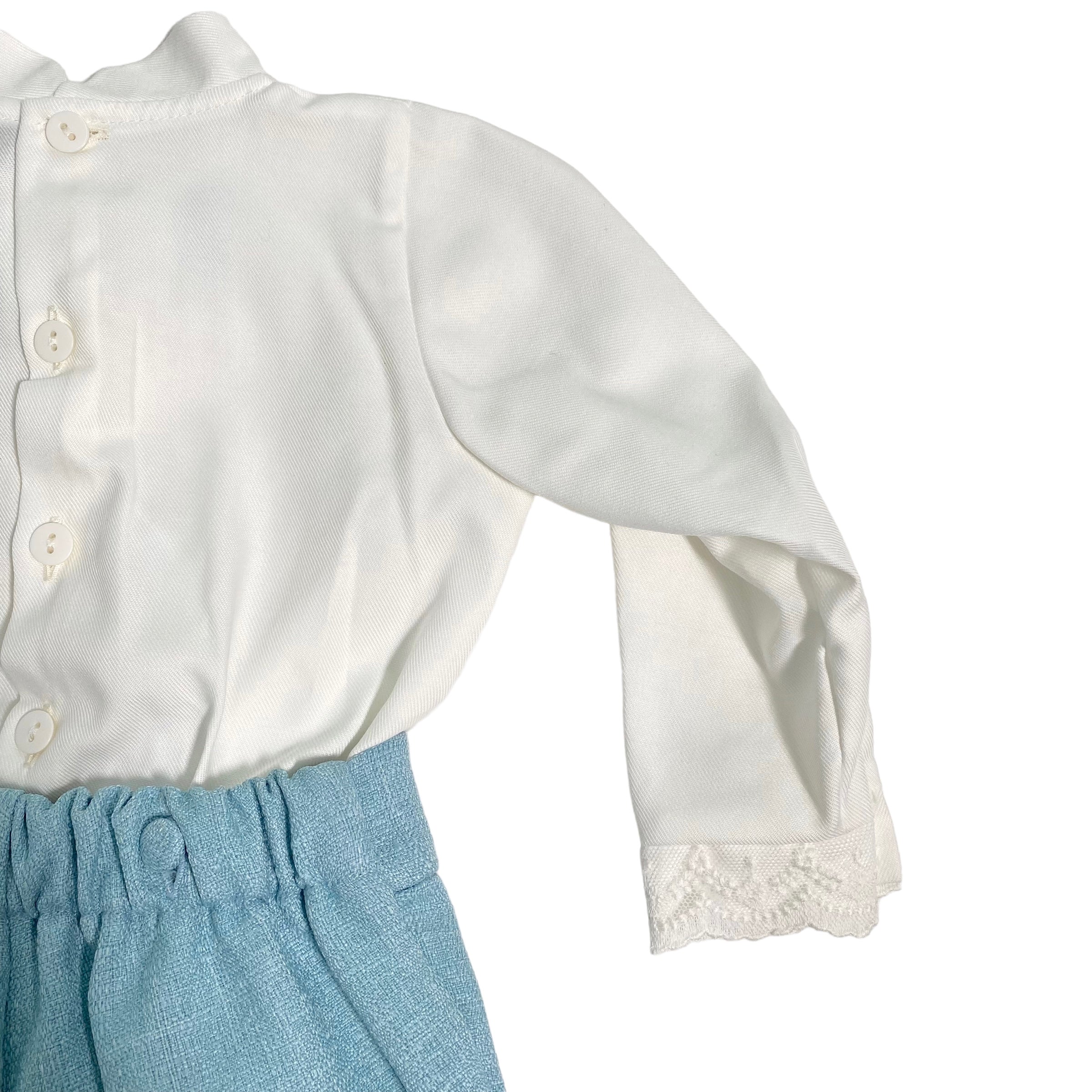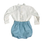 -la camicia e il bermuda si legano all'interno con dei bottoncini in modo da ricreare un pagliaccetto super chic