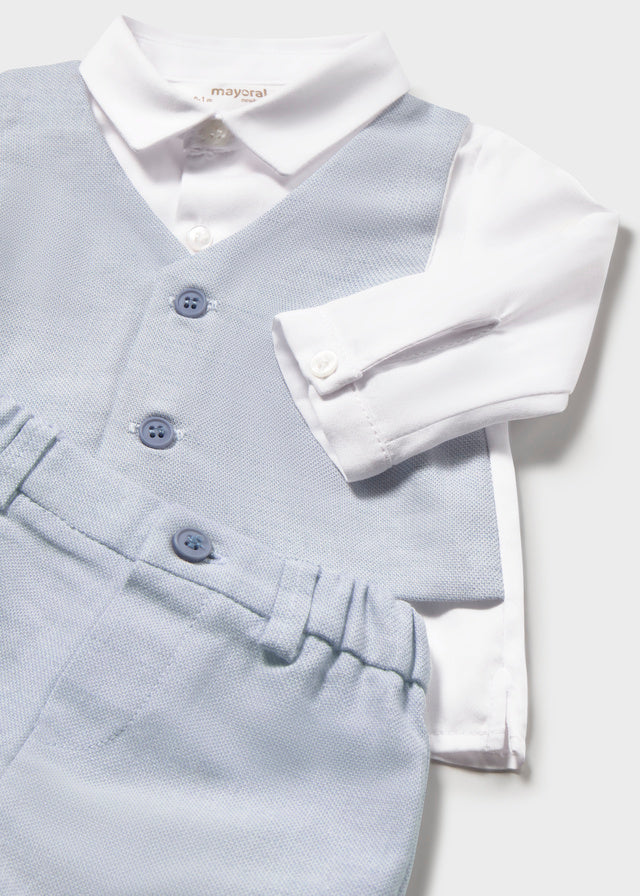 Questo elegante completo neonato Mayoral combina stile e praticità in un'unica soluzione. Composto da bermuda e camicia con finto panciotto, il capo offre un look sofisticato perfetto per occasioni speciali e momenti importanti. La qualità costruttiva Mayoral garantisce comfort e durabilità, mentre il design ricercato valorizza il piccolo con un tocco di classe. Ideale per chi desidera abbigliamento raffinato che non compromette la libertà di movimento del bambino.
