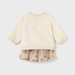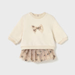 Felpa manica lunga per neonata. Girocollo. Chiusura con bottoni a pressione nella parte posteriore. Elementi decorativi: fiocco.