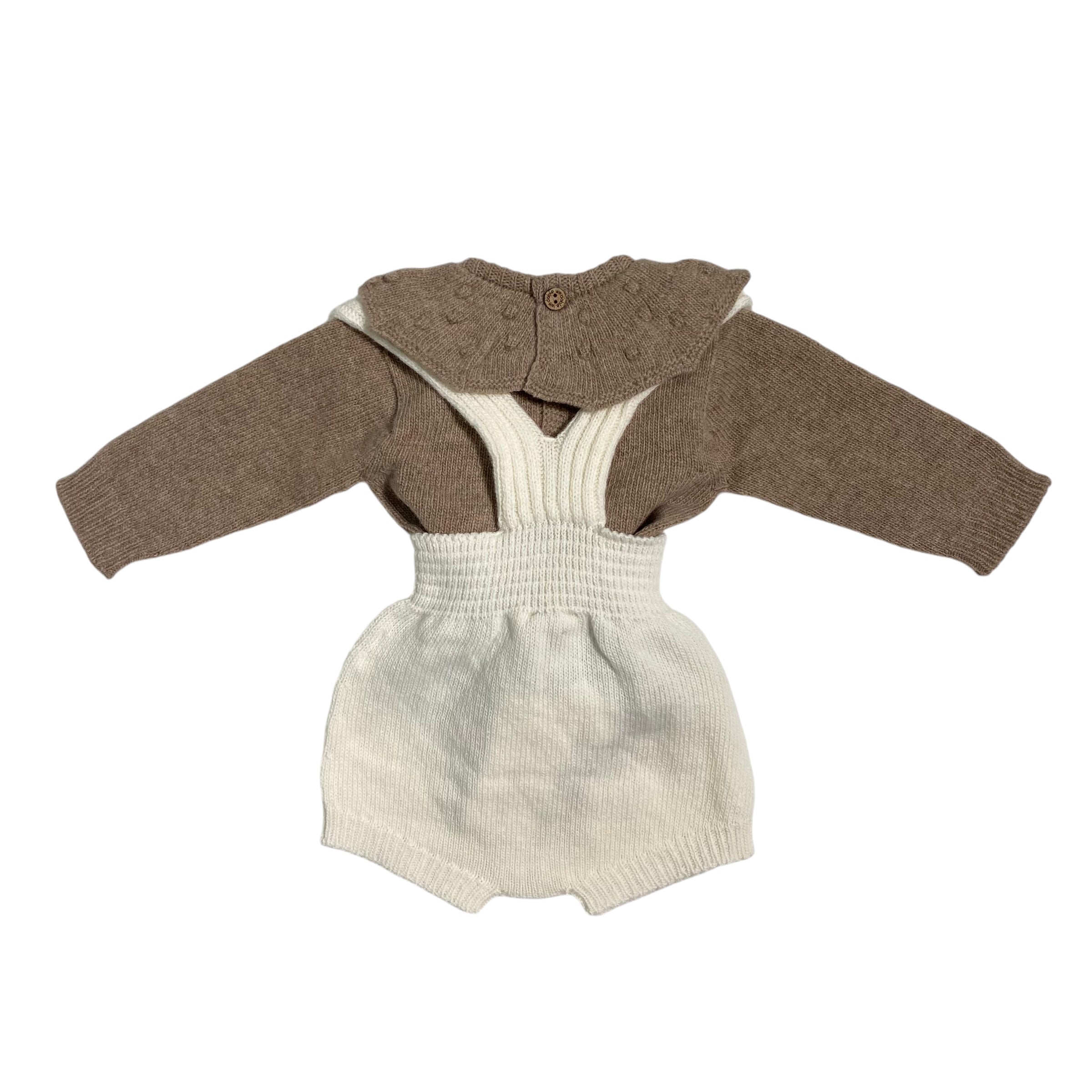 Shorty con spalline lavorato a maglia in morbida lana merino, ottimo per neonati. Lo short con spalline WINTER LOVE è lavorato a maglia con piccoli pompon che esaltano la bellezza e il carattere unico del capo. Si chiude sulle spalline con bottoni in cocco. Realizzato con la tecnologia Wholegarment, questo capo è privo di cuciture per il massimo comfort del tuo bambino.