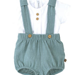 Questo completo in cotone è perfetto per il tuo neonato. Include una comoda salopette con bretelle in garza e una shirt a maniche corte. Realizzato con materiali di alta qualità, garantisce un look alla moda e un comfort ottimale per il tuo bambino. Ideale per qualsiasi occasione!