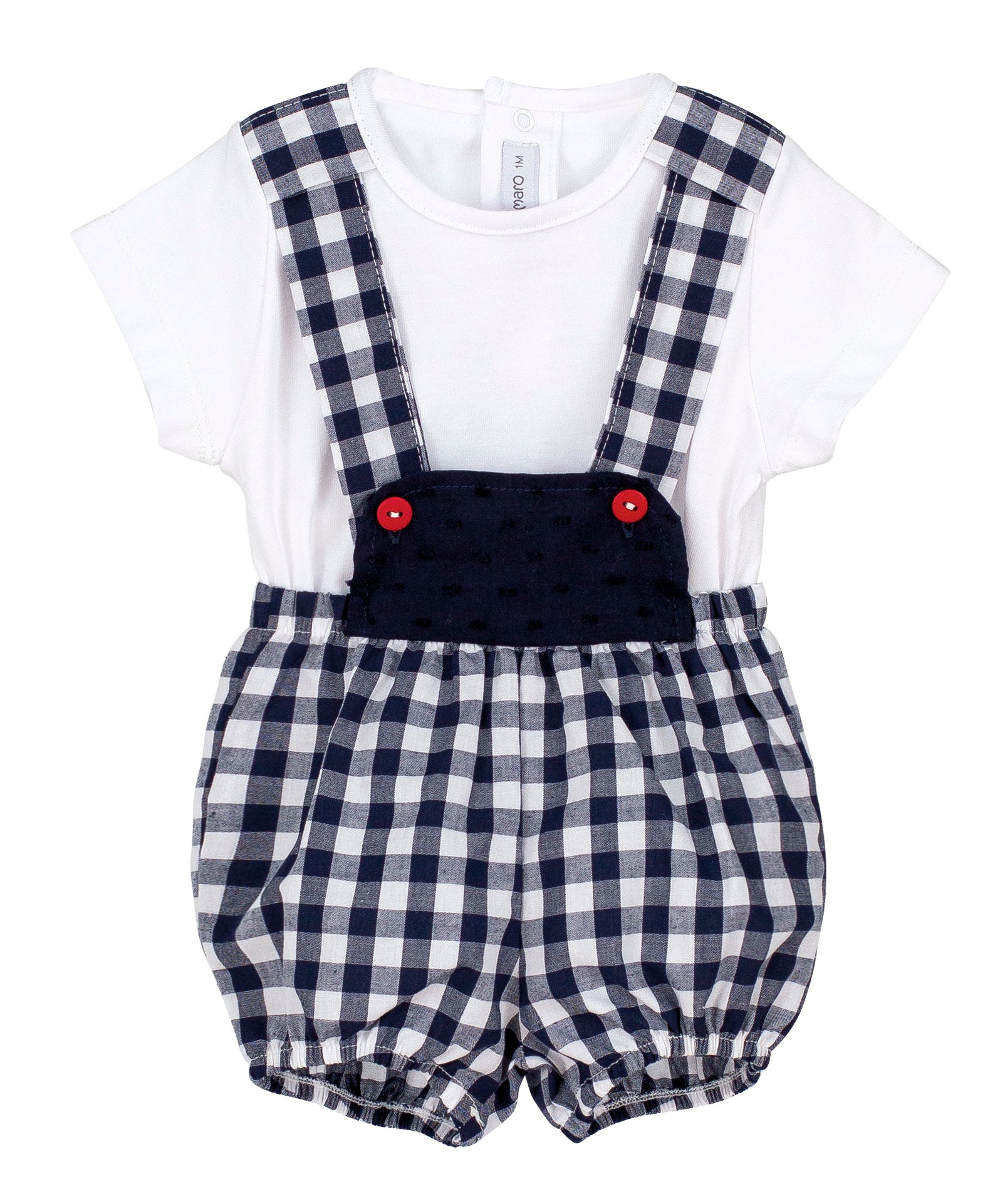 -culotte con bretelle in cotone a quadri blu