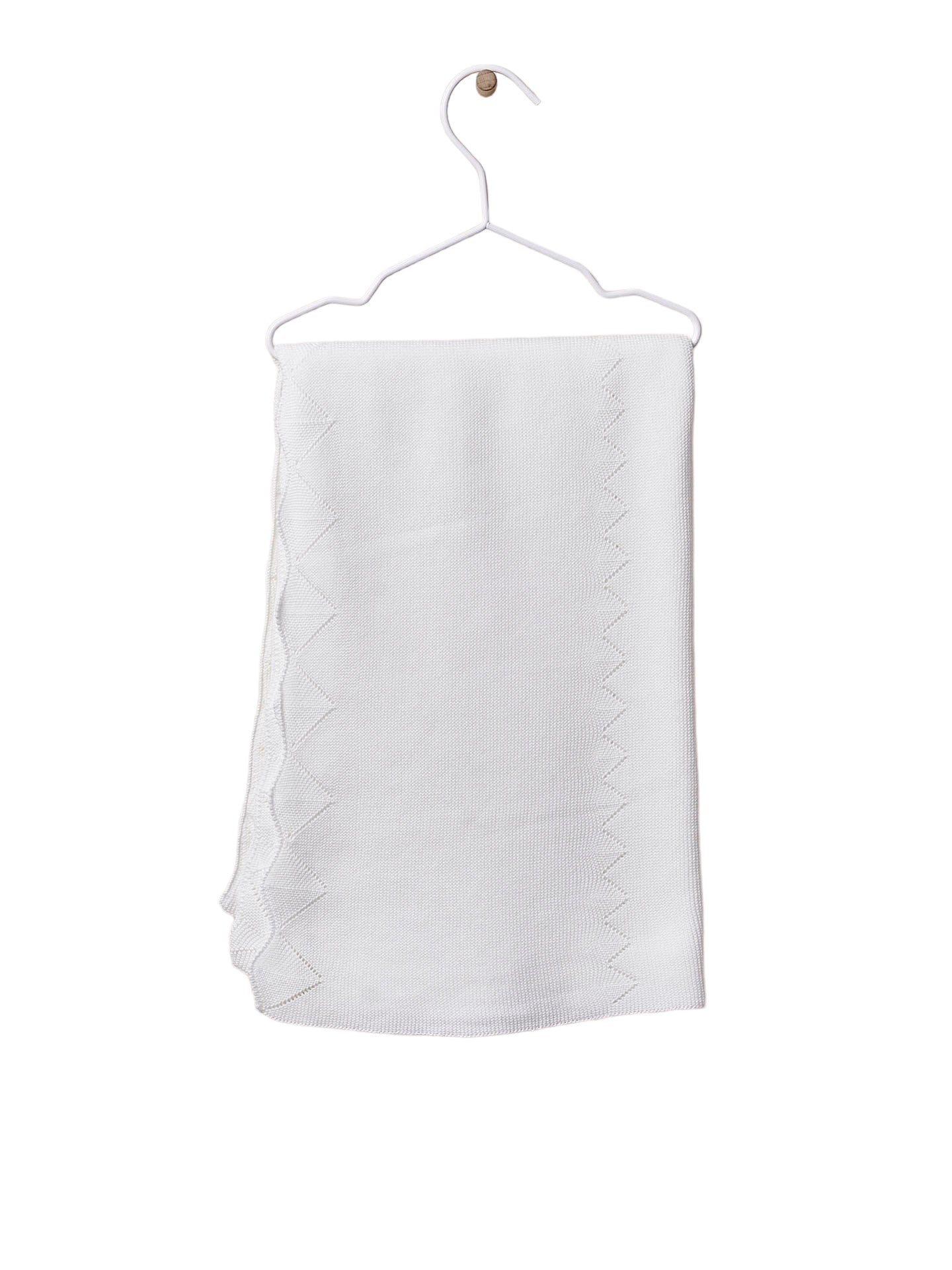 Coperta in caldo cotone organico, in tinta unita panna, con traforature interne.