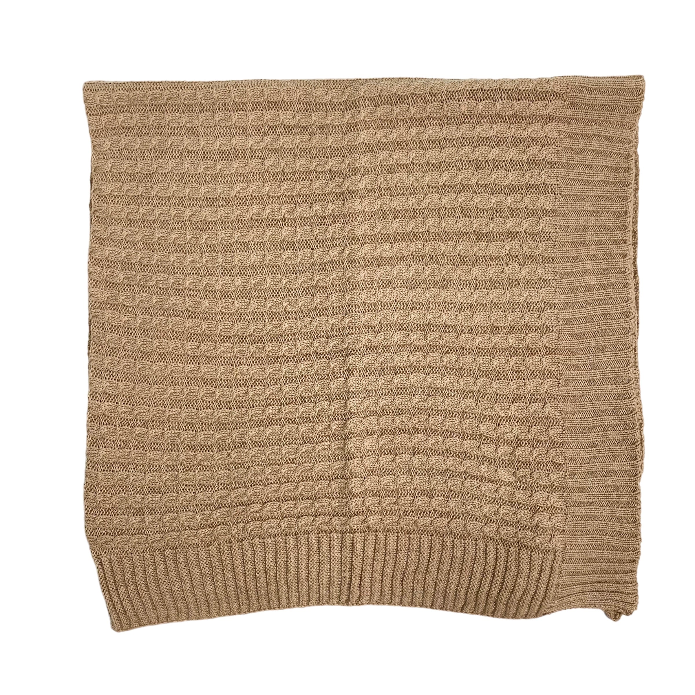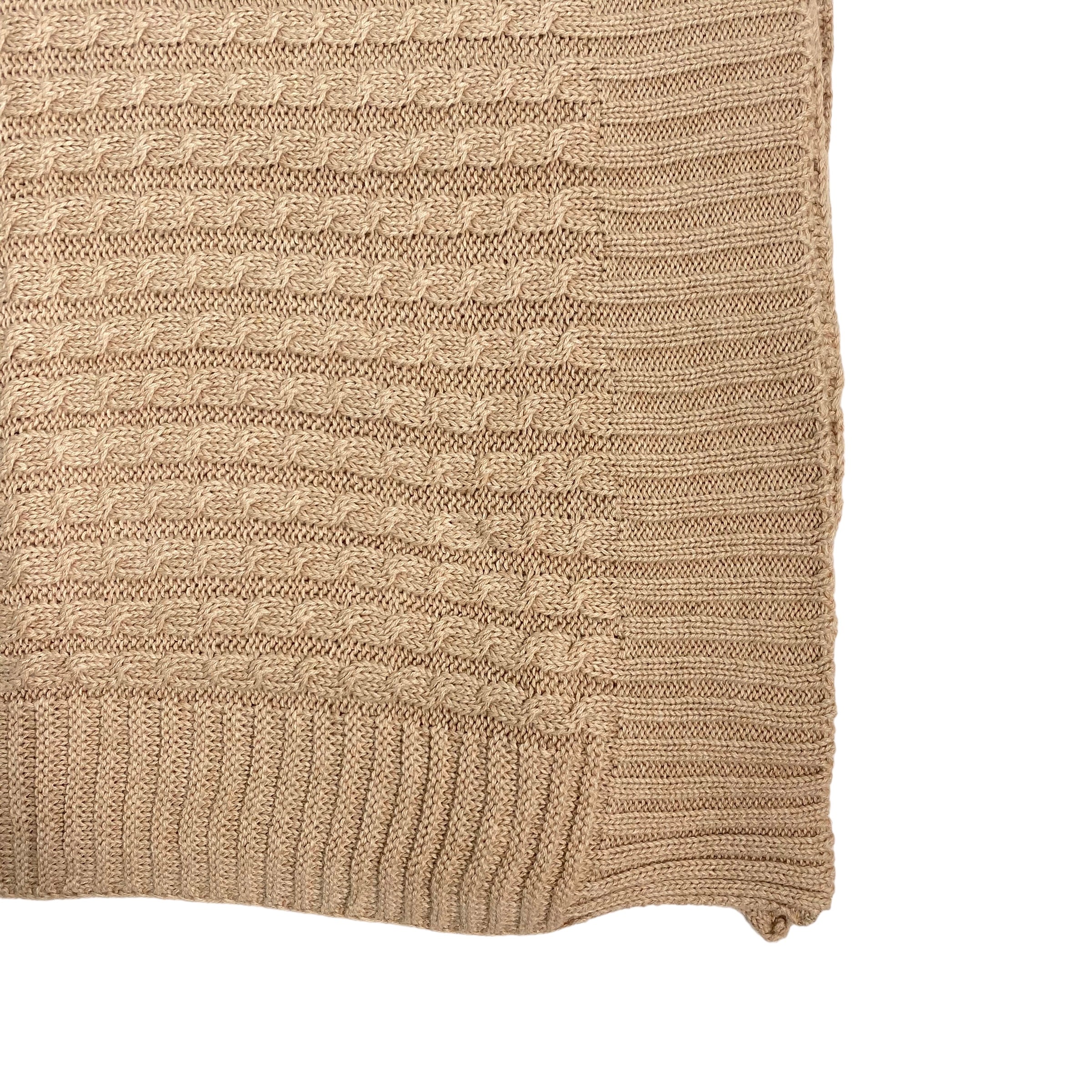 Coperta scialle in filo di cotone, con trama di trecce all over.