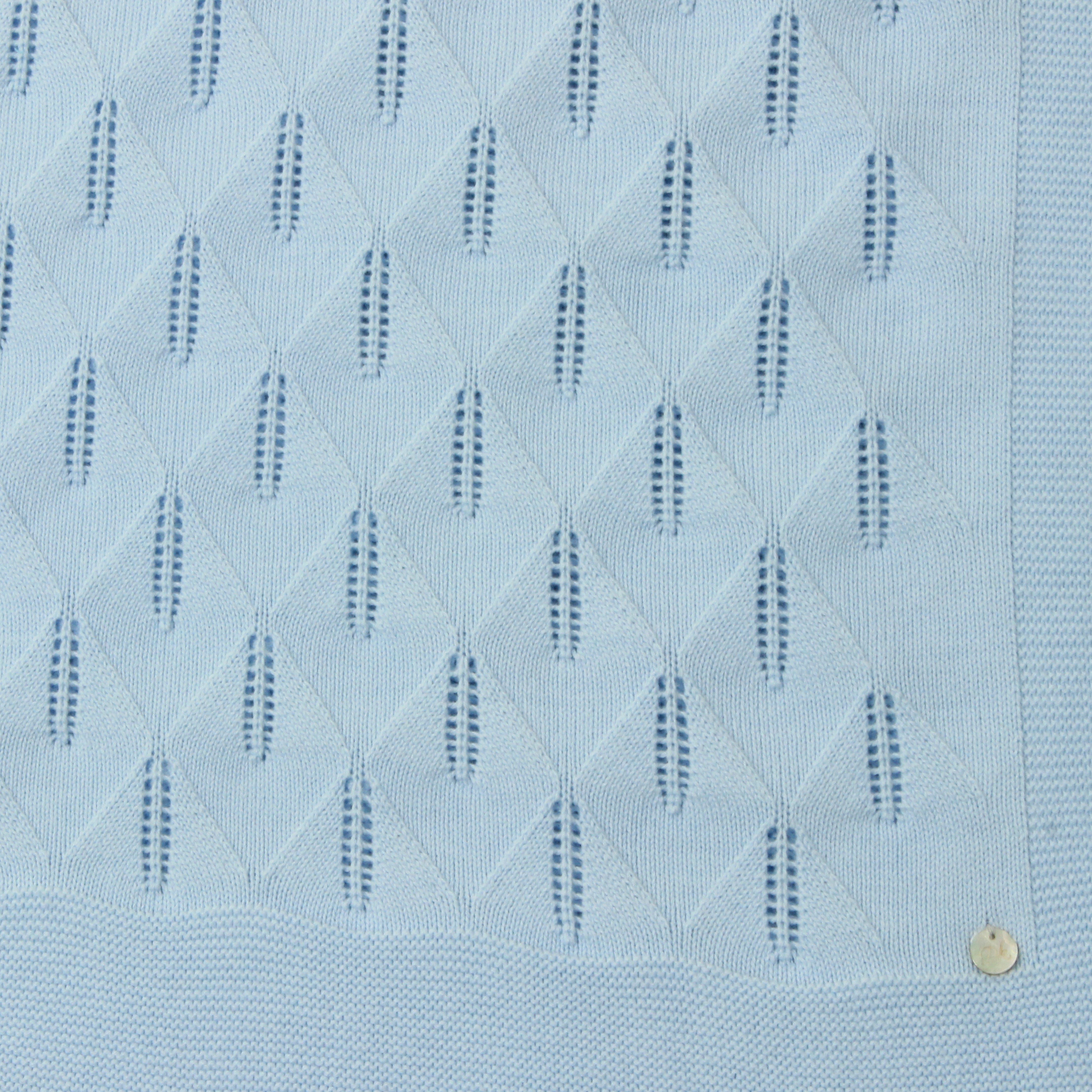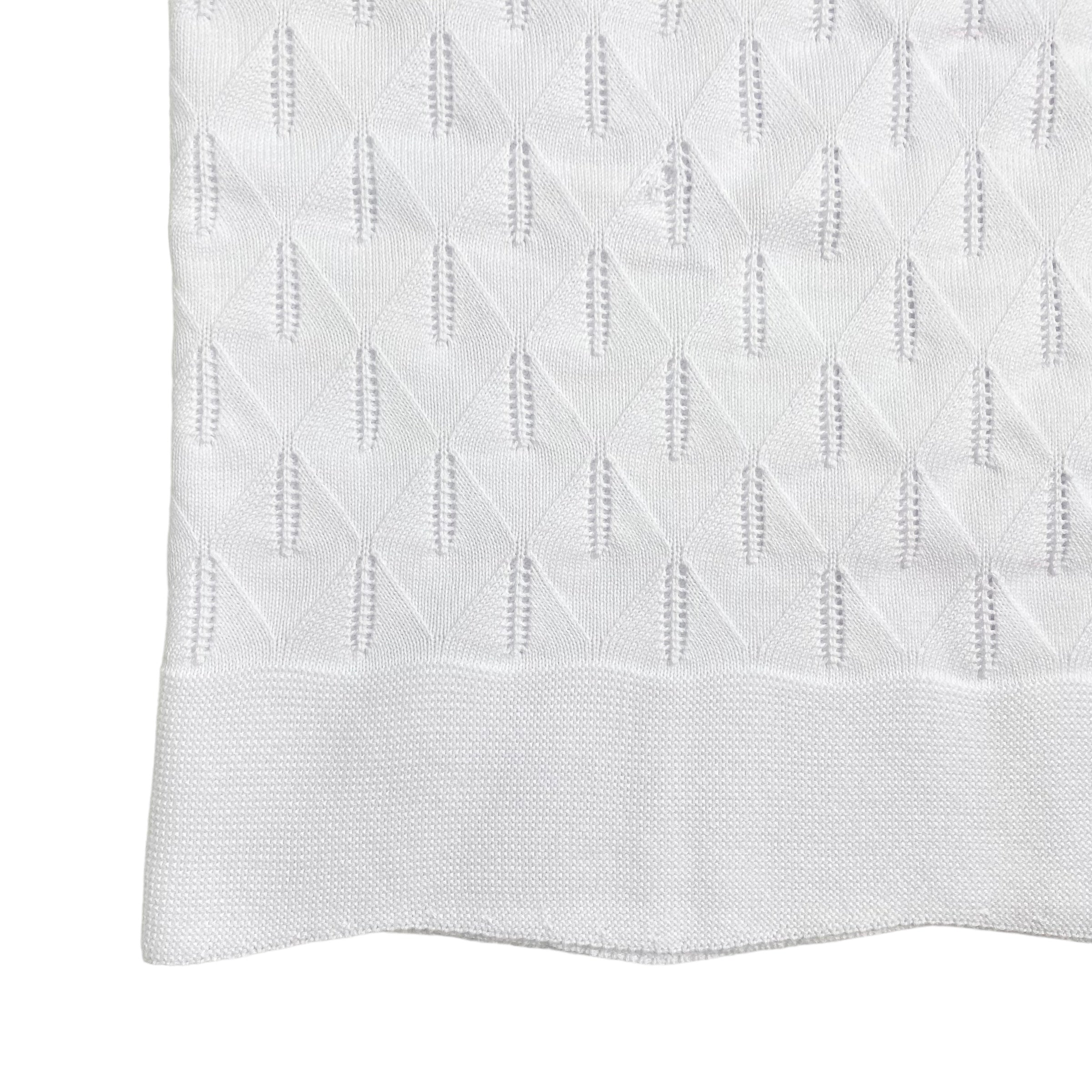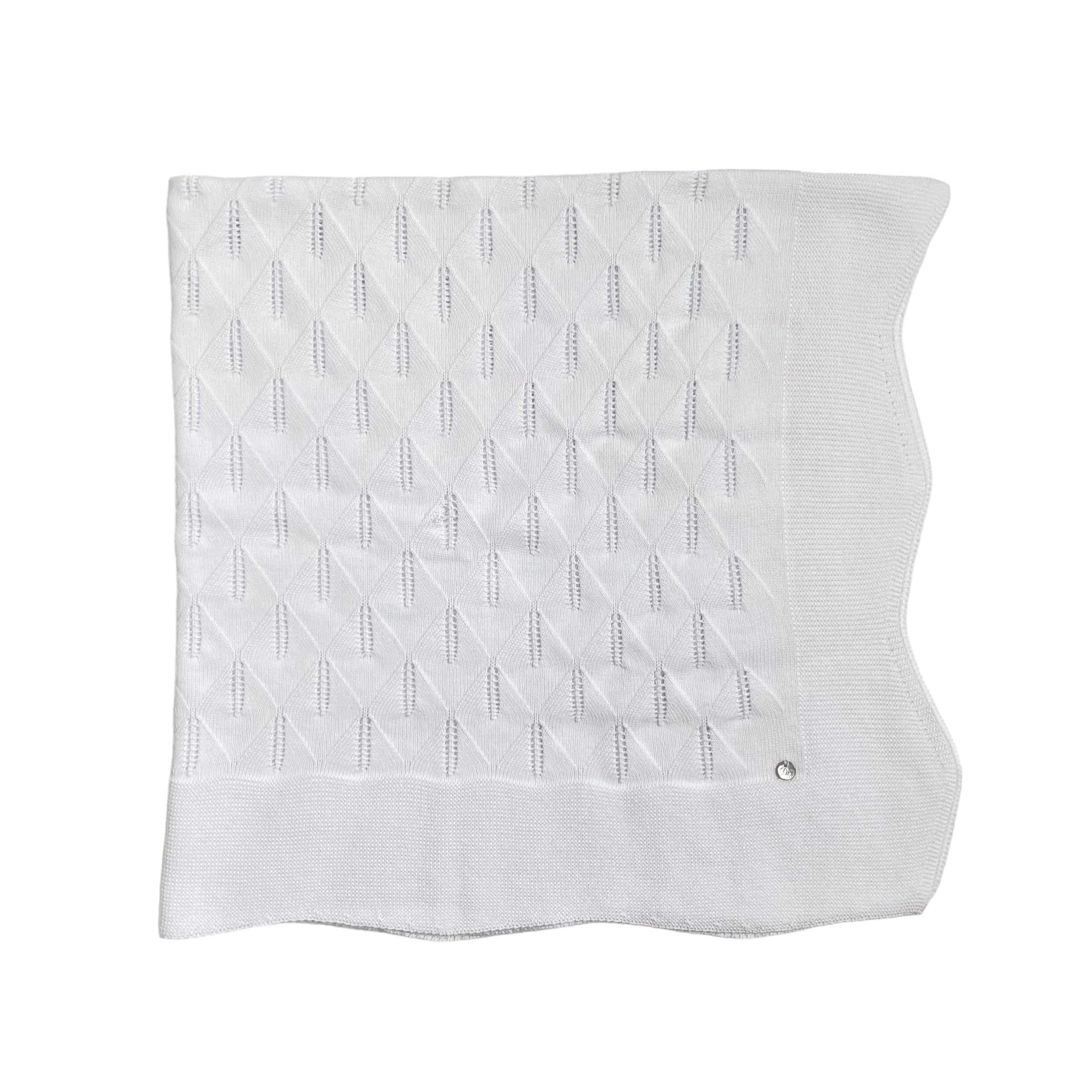 Questa copertina a scialle è perfetta per un'uscita clinica o un evento speciale. Realizzata in filo di cotone traforato, offre un tocco delicato e confortevole alla pelle sensibile del neonato. Il fiocco in raso aggiunge un tocco elegante alla coperta.