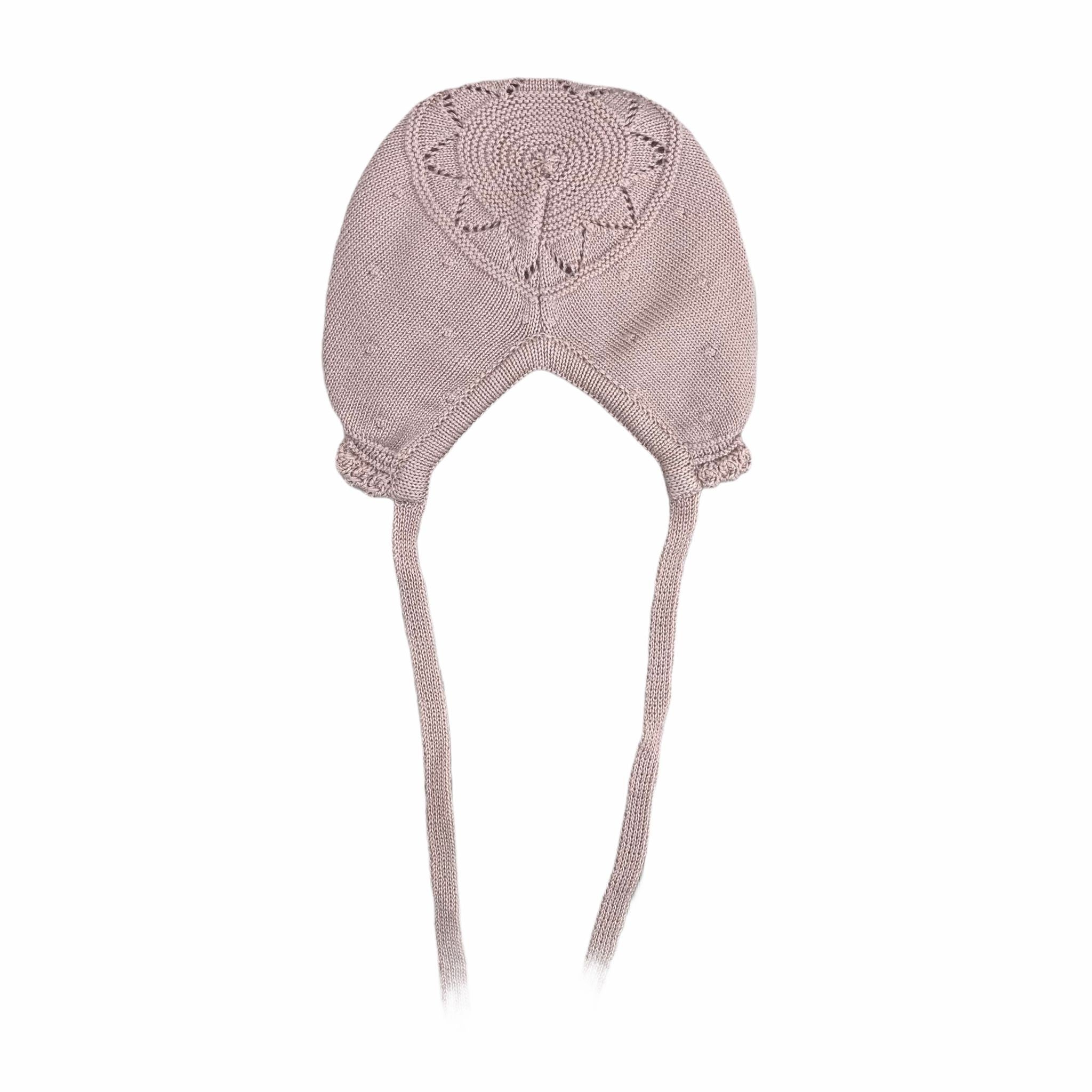 Perforated cotton thread cap with embossed polka dots. Closure with laces.