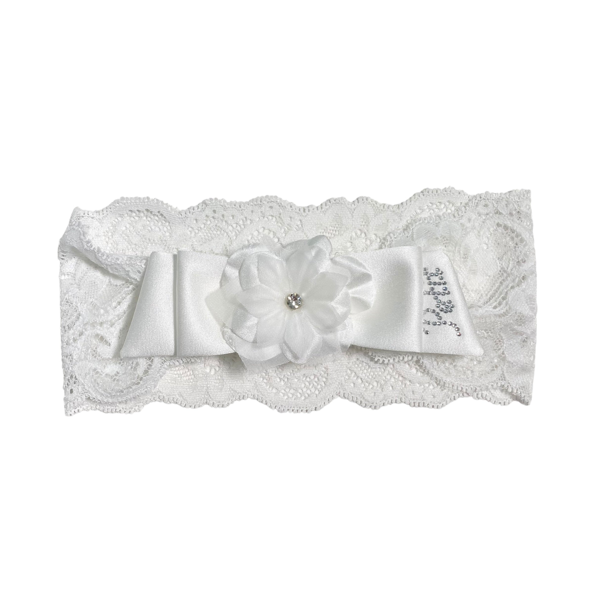 Rendi la tua neonata ancora più elegante con la nostra fascia in pizzo con fiocco e strass. Perfetta per il battesimo o per altre occasioni speciali, questa fascia è realizzata in Italia con materiali di alta qualità. ll fiocco con strass aggiunge un tocco di luce e raffinatezza.